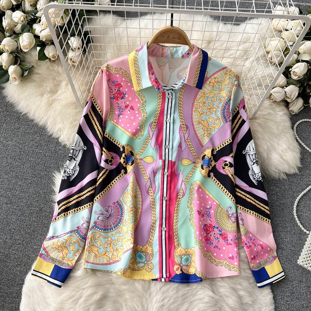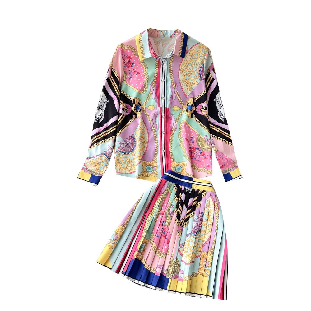 Celebrity print suit women's early spring new long-sleeved shirt women's design sense all-match high-waist pleated skirt two-piece set ロング プリーツ スプリング 春物 スカート lyxaj85717199569