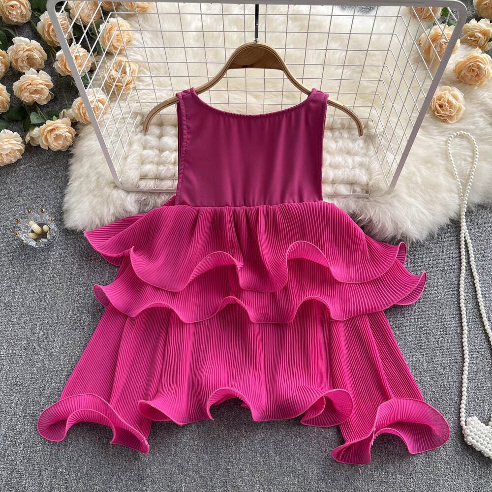 2022年夏の韓国版の甘くて西洋風のプリンセススタイルの不規則なシャツストラップレスの妖精のケーキシフォンシャツ 大人ガーリー スウィート キュート カジュアル サマー 夏物 lyxaj1832926649