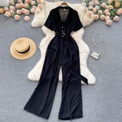 気質OLプロスーツカラージャンプスーツ女性スリムスリムストレートチューブドレープジャンプスーツハイウエストワイドレッグロングパンツ ハイウェスト ワイドパンツ lyxaj30182429875