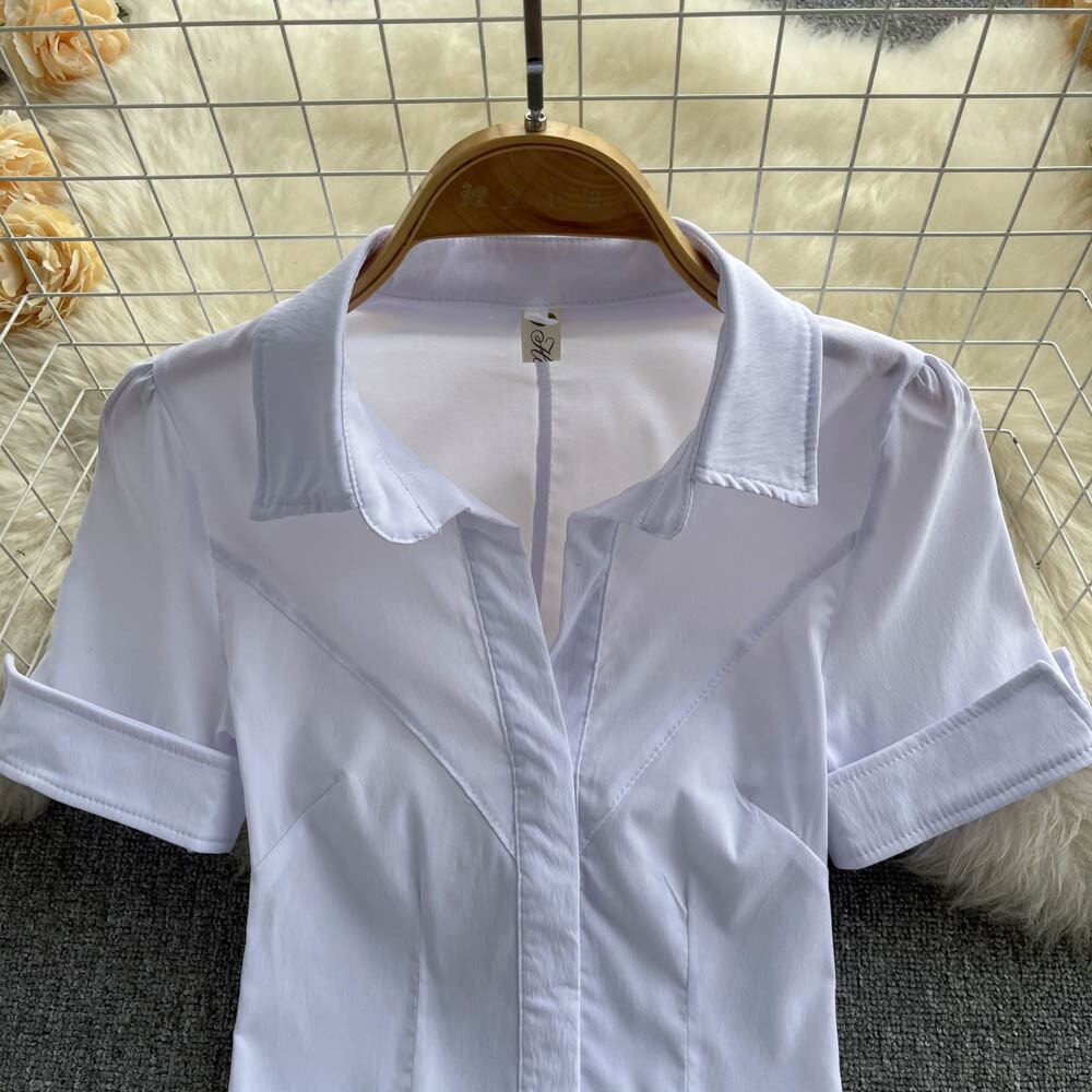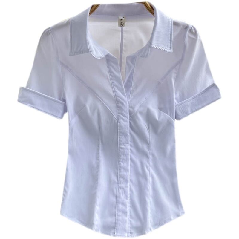 ホワイトVネックシャツレディースサマーセクシースリム気質オールマッチ半袖シャツシックなデザインニッチトップ 夏物 lyxaj20774591779