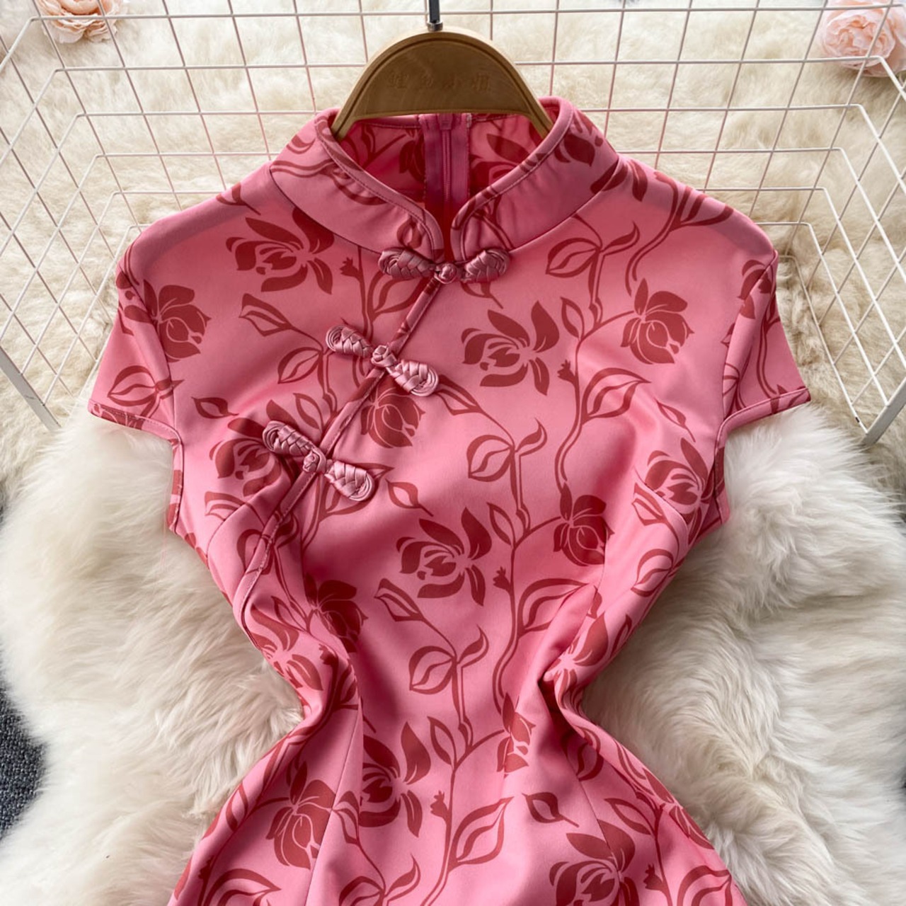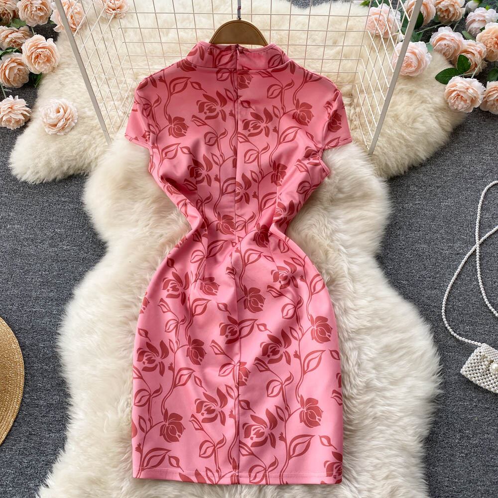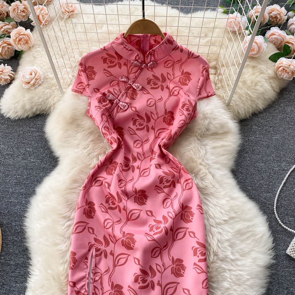 夏の新しいレトロなプリント中国の女の子は毎日改善されたチャイナドレススリムフィットスリムバッグヒップスリットドレストレンディ サマー 夏物 lyxaj93043360720
