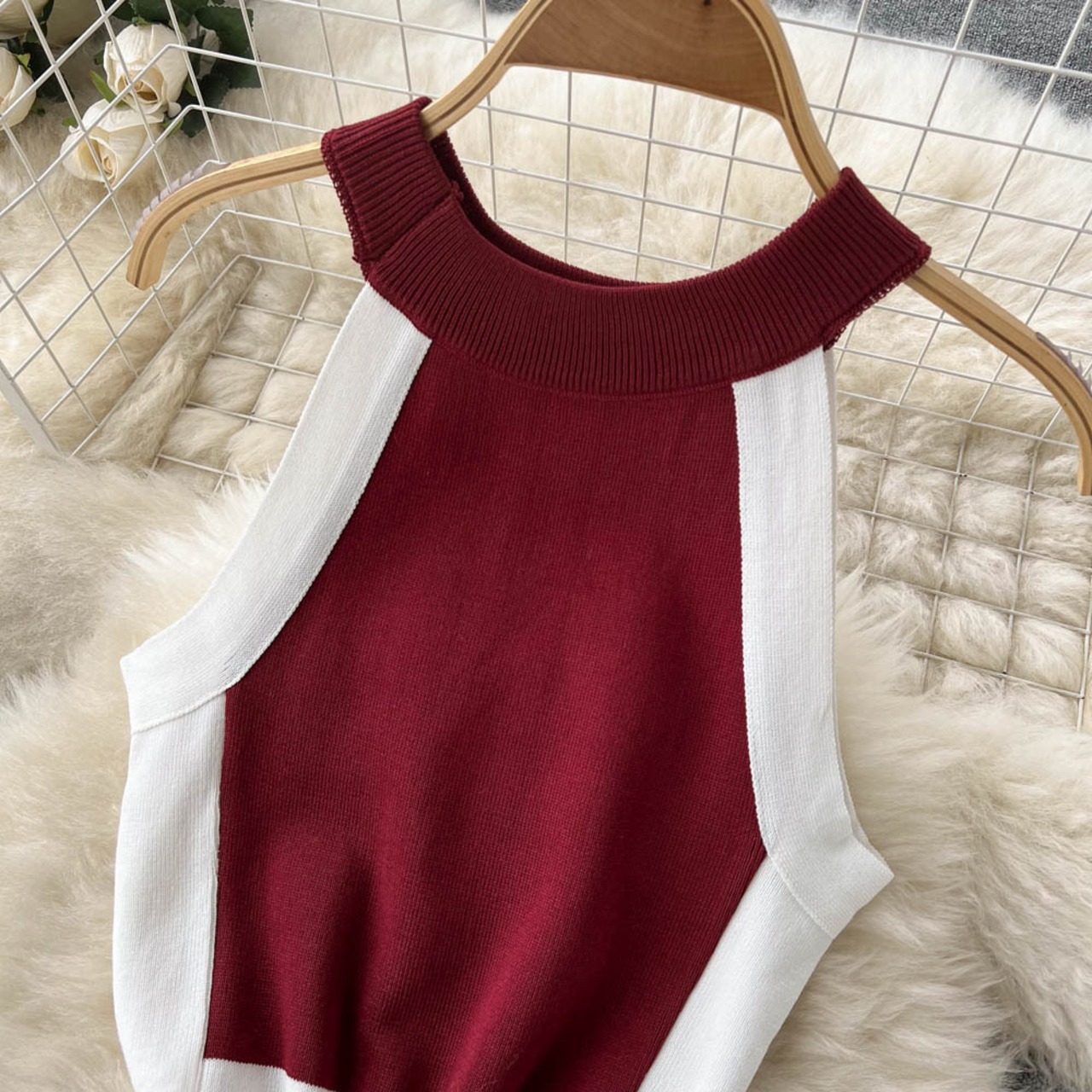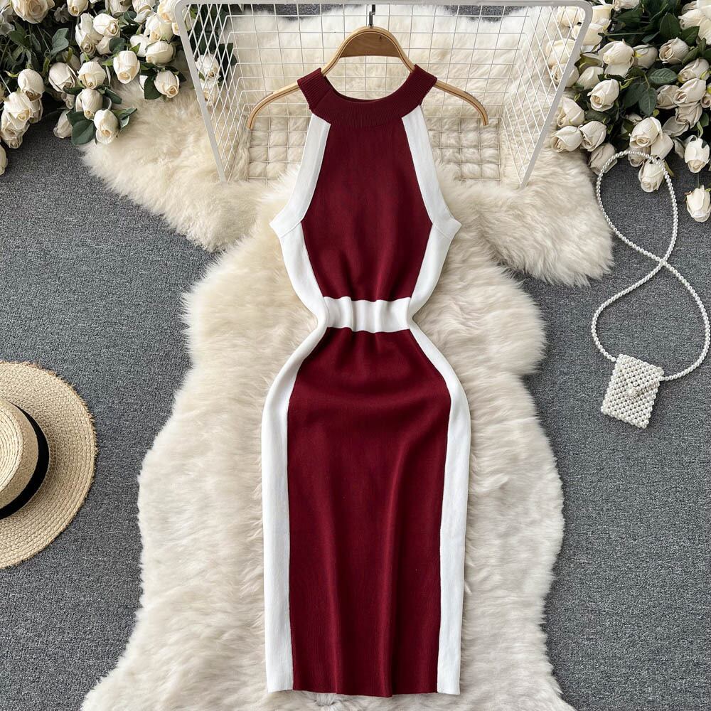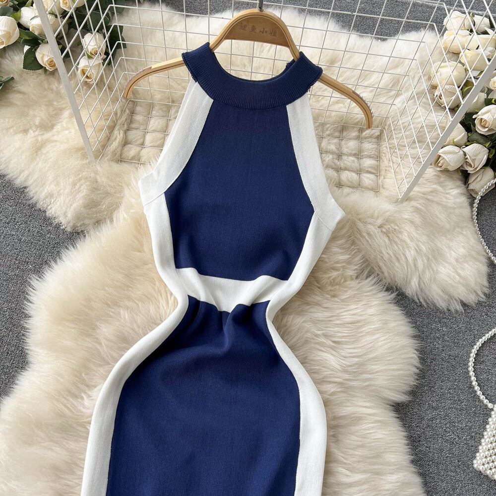 2022年サマードレス新デザインセンスニッチセクシーステッチコントラストカラーホルターベストニットドレスレディースバッグヒップスカート 夏物 lyxaj7093605212