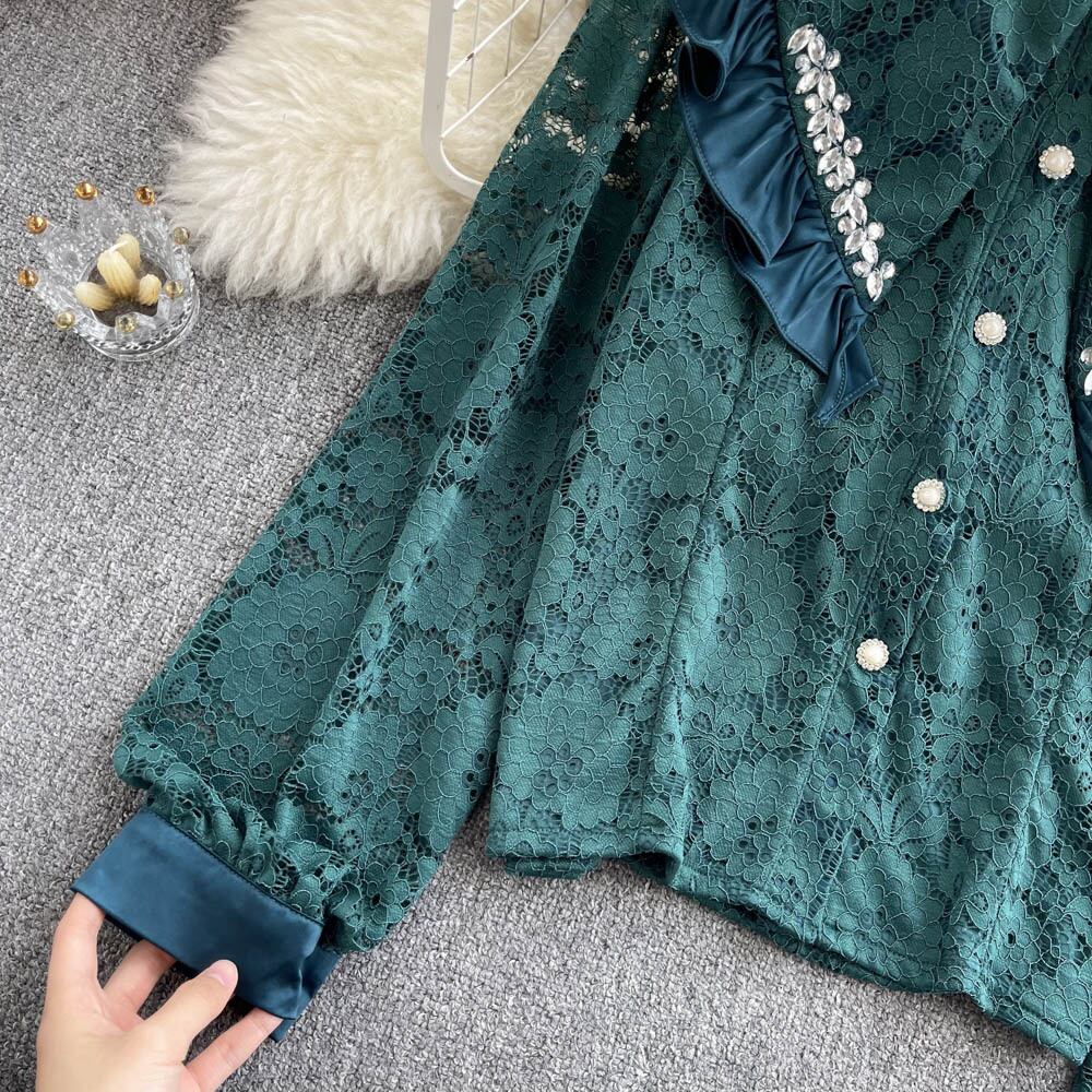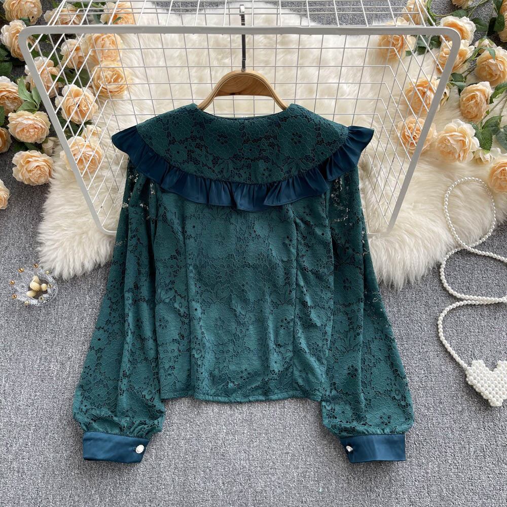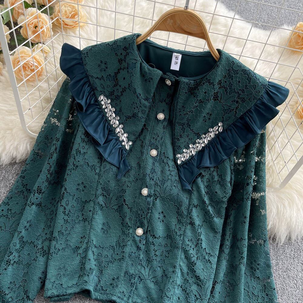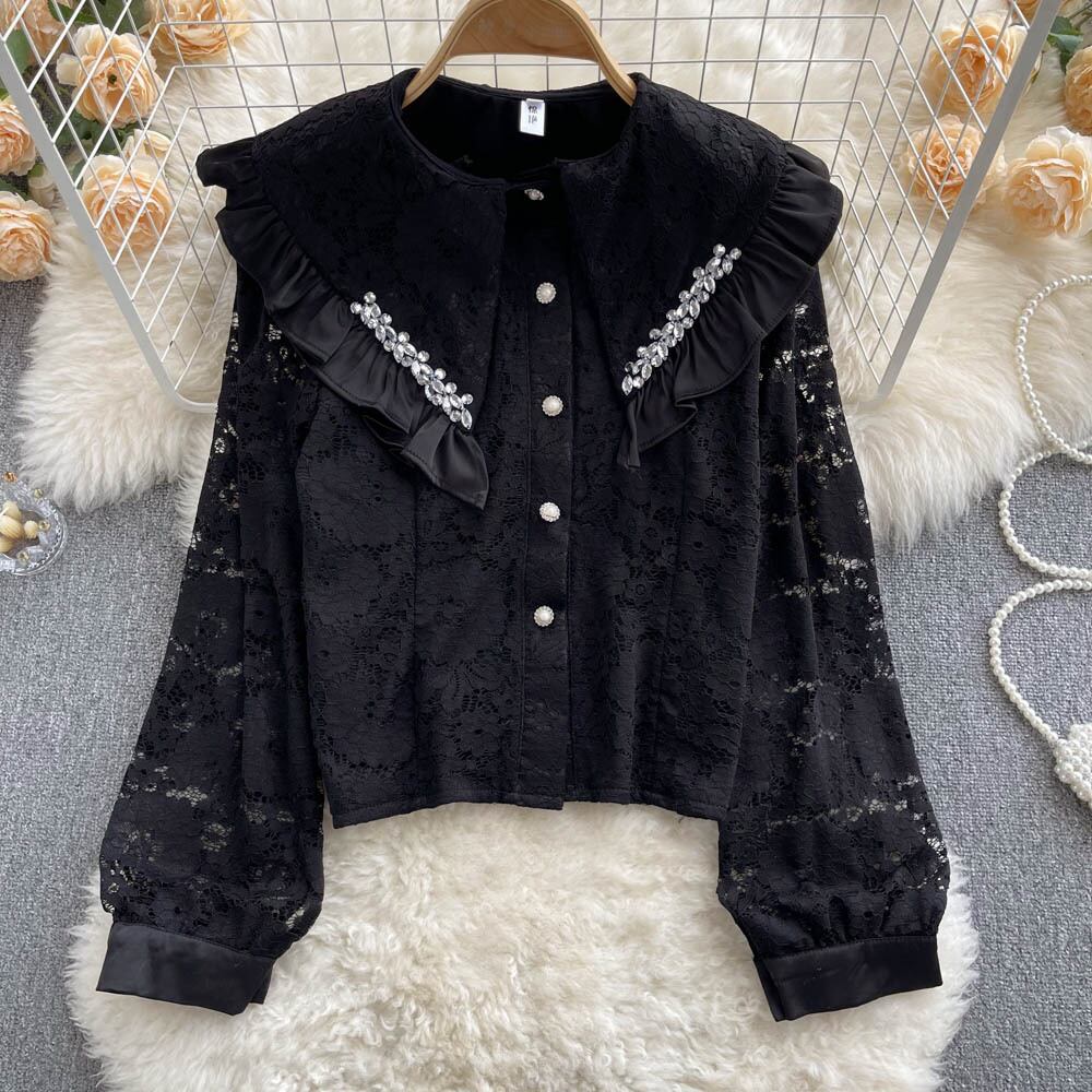 春のシャツの女性のデザインセンスニッチ菌エッジダイヤモンドをちりばめた人形の襟の年齢を減らすオールマッチの甘いレースのトップ女性のトレンド 大人ガーリー スウィート キュート カジュアル スプリング 春物 lyxaj31134555235