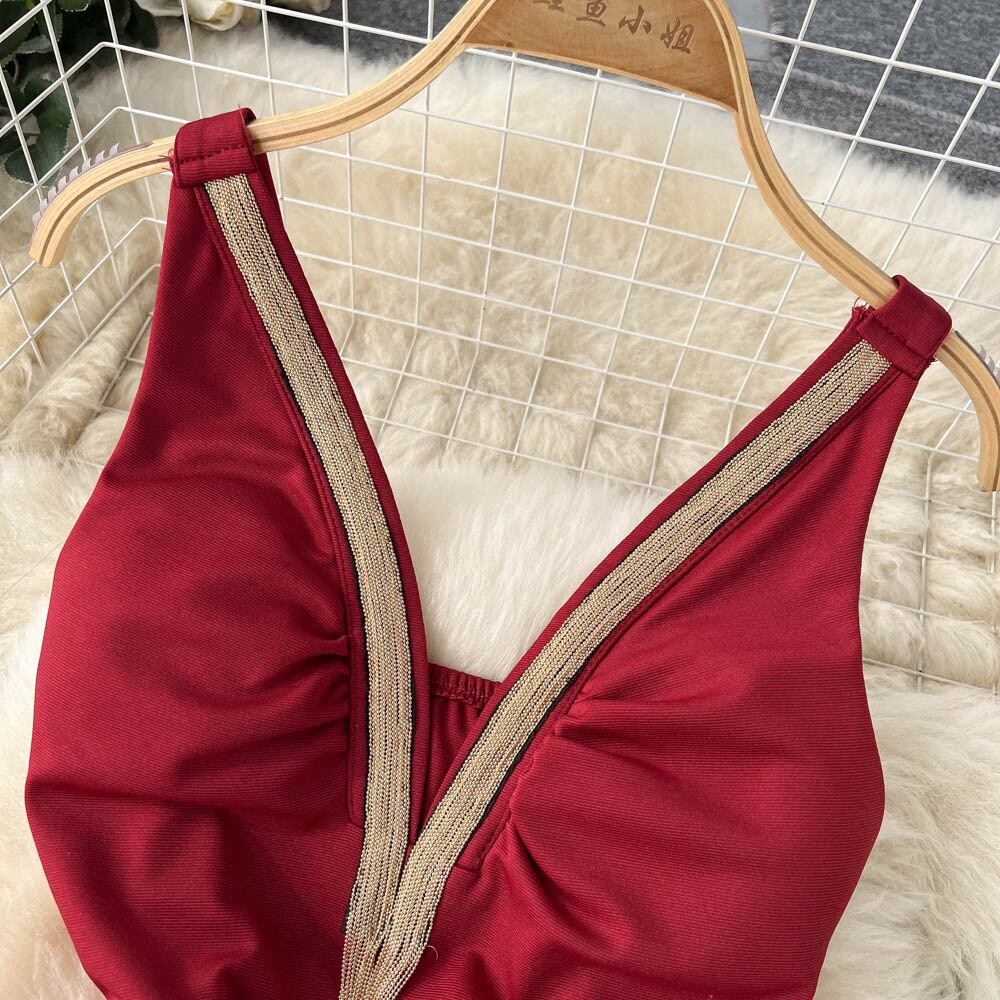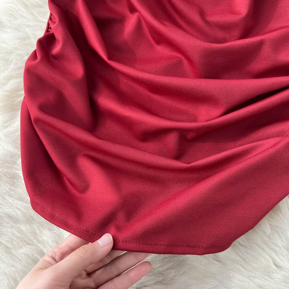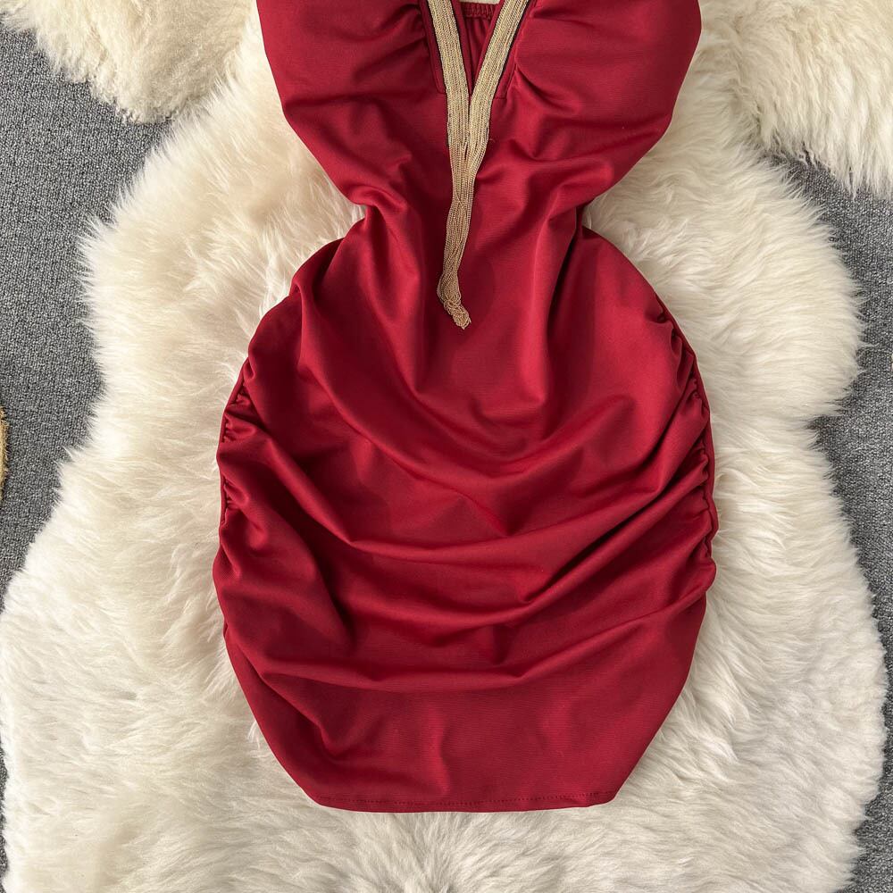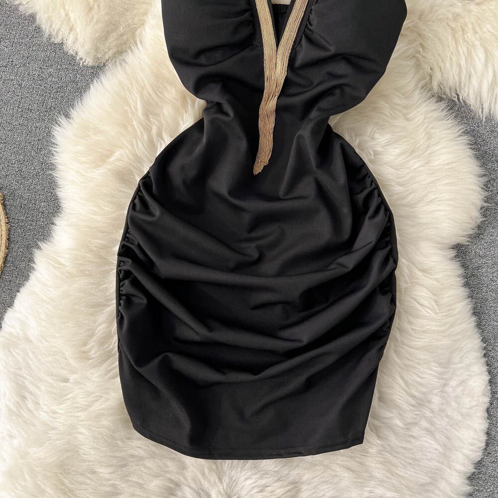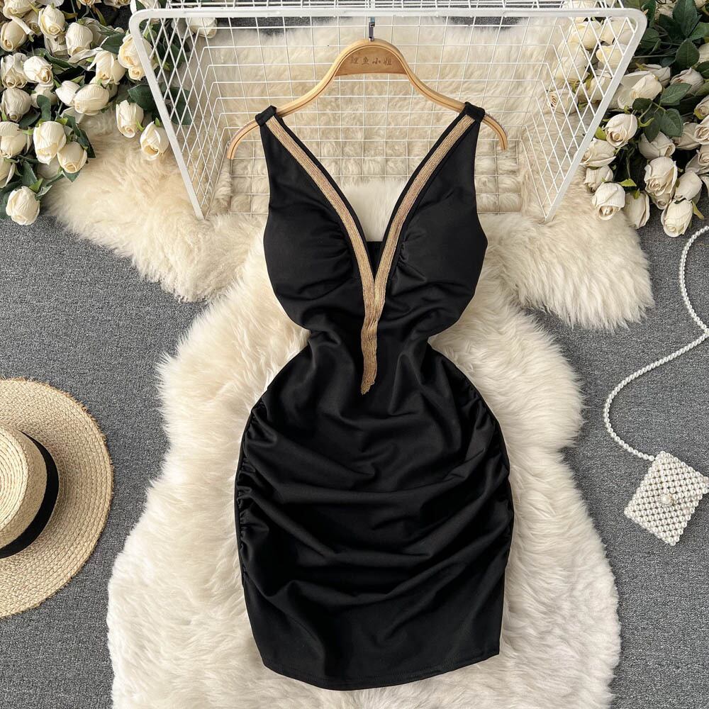 2022 design sense suspender skirt with bottoming skirt tight-fitting bag hips backless v-neck low-cut pleated sexy dress プリーツ スカート Vネック lyxaj74022737524