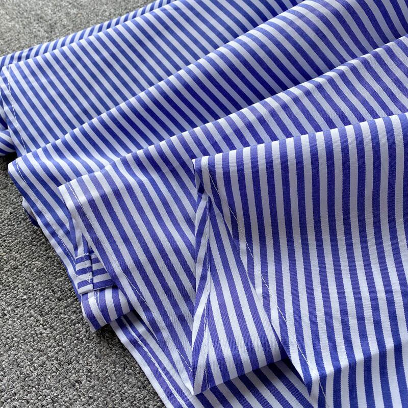 秋のシャツの女性のデザインセンスニッチ不規則なフリルの陰謀オフショルダー長袖レトロストライプドレス ロング オータム 秋物 lyxaj19759228408