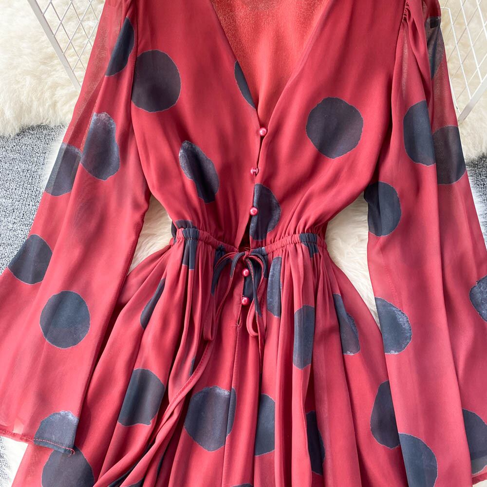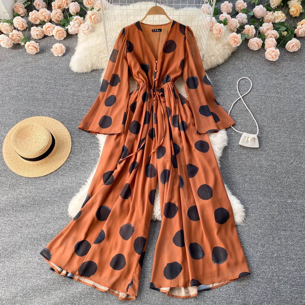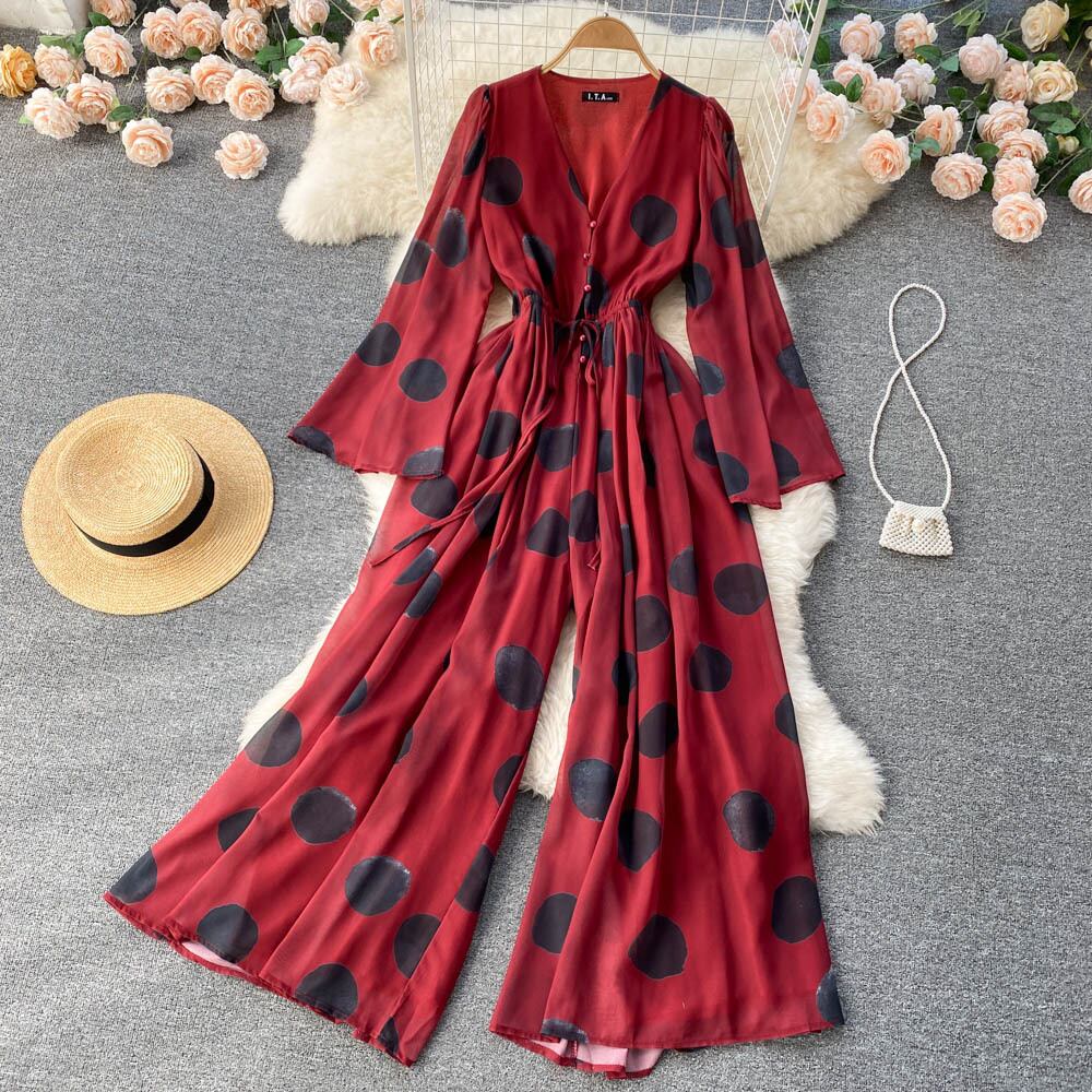 2022年秋新作フレンチVネックエレガントプリントティーブレイクスタイルクラシックウエストジャンプスーツカジュアルパンツトレンド オータム 秋物 lyxaj68015995295