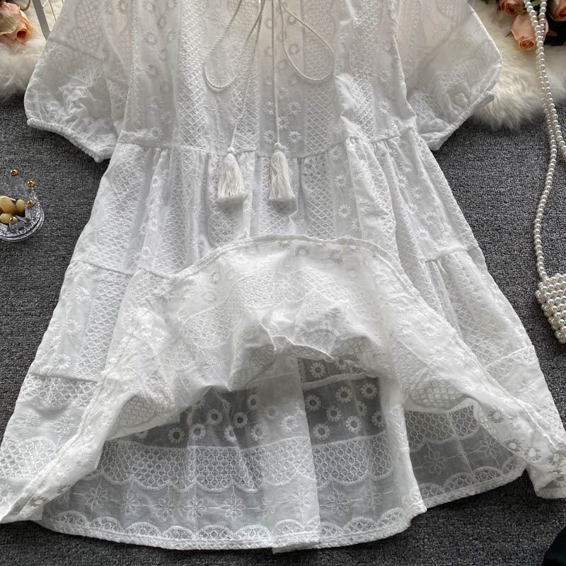 ヨーロッパとアメリカのinsホリデースタイルのドレス2021新しい夏のドレスレトロなタッセルレースラウンドネックルーズドールスカート サマー 夏物 Oネック ヨーロピアン lyxaj42845067044