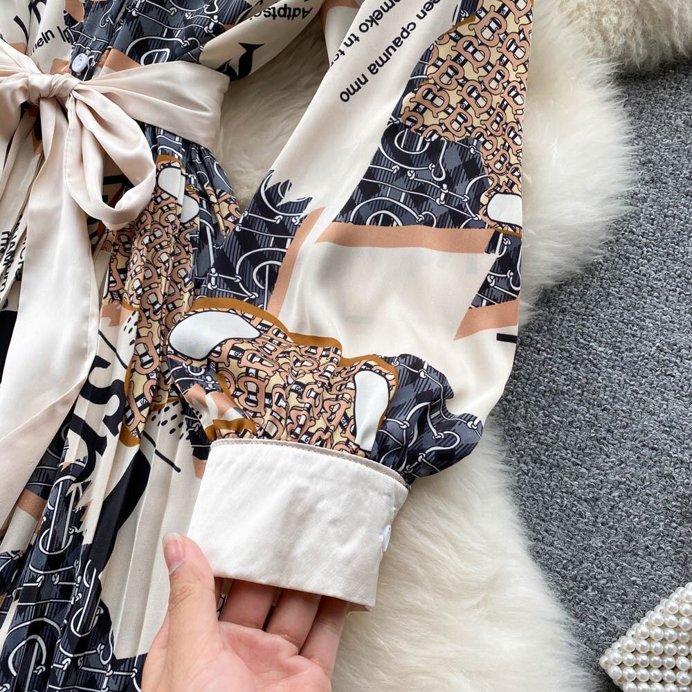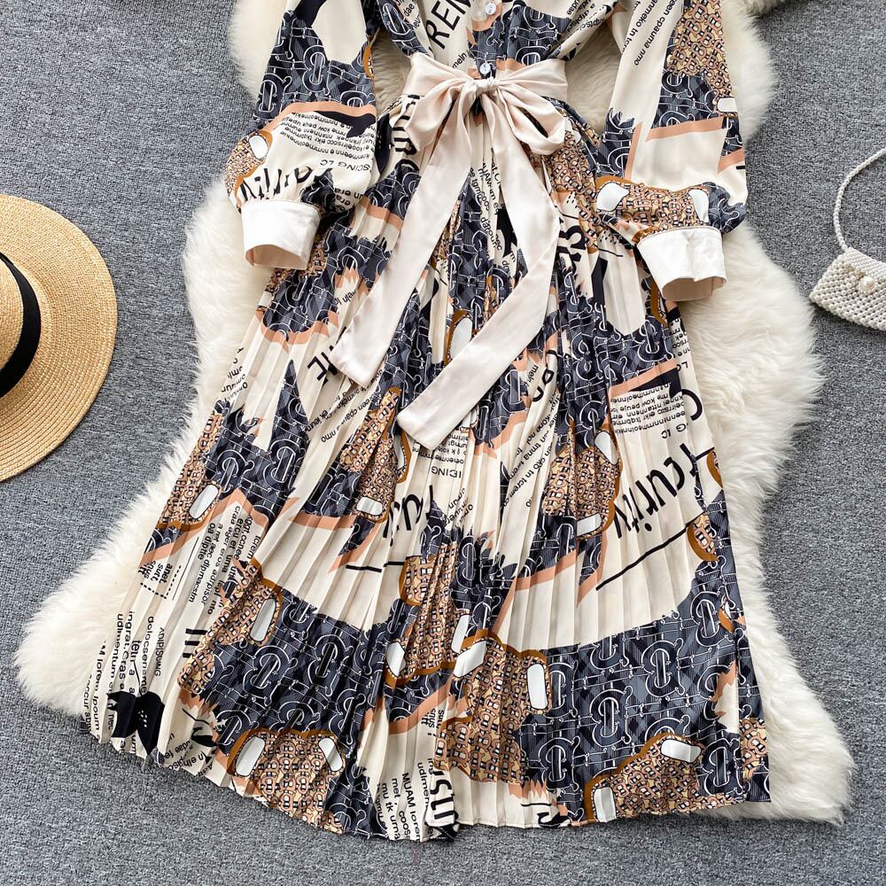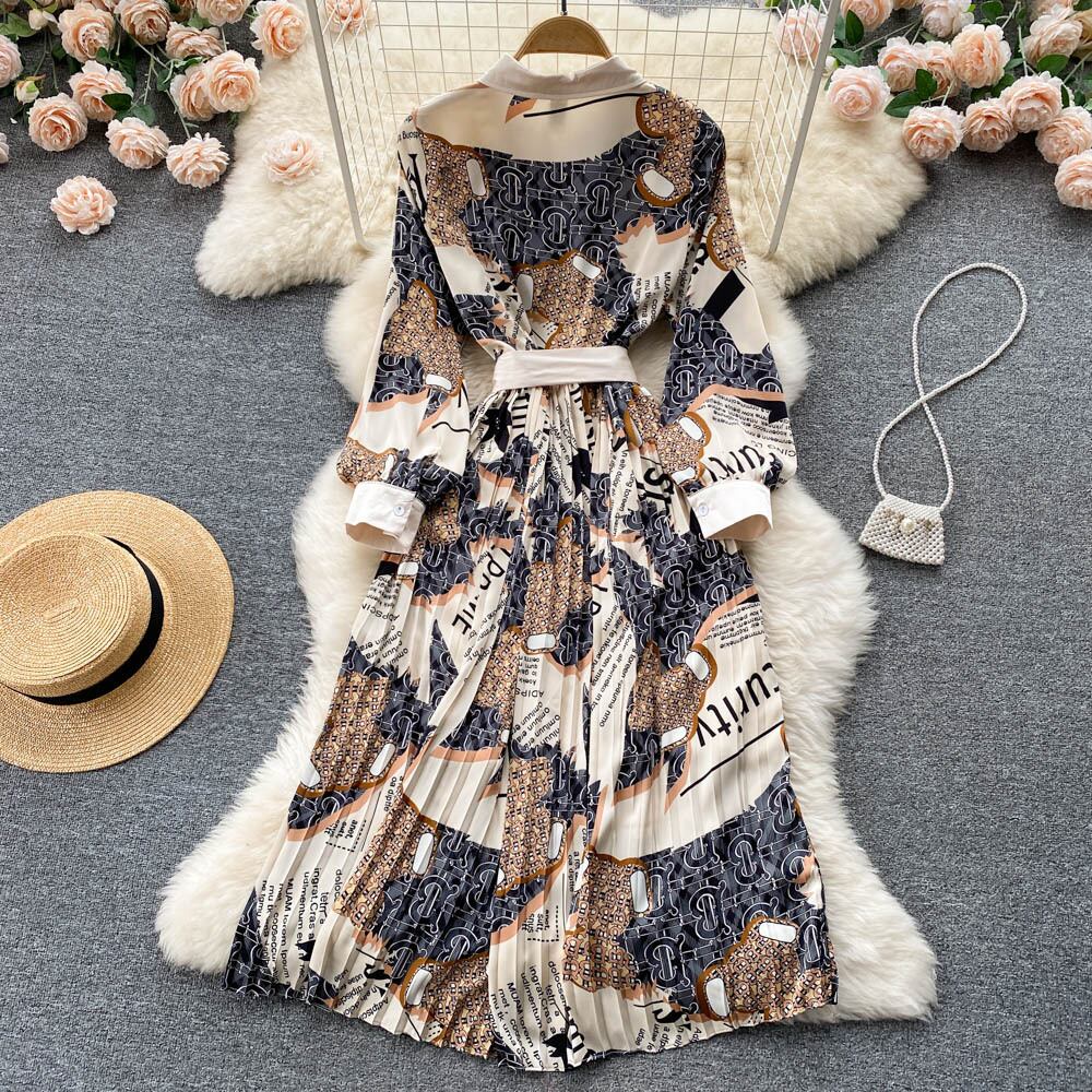 2022年春新作韓国版気質薄手ロングスカートファッションウエストプリントプリーツ大スイングスカートドレストレンド スプリング 春物 lyxaj8502825192