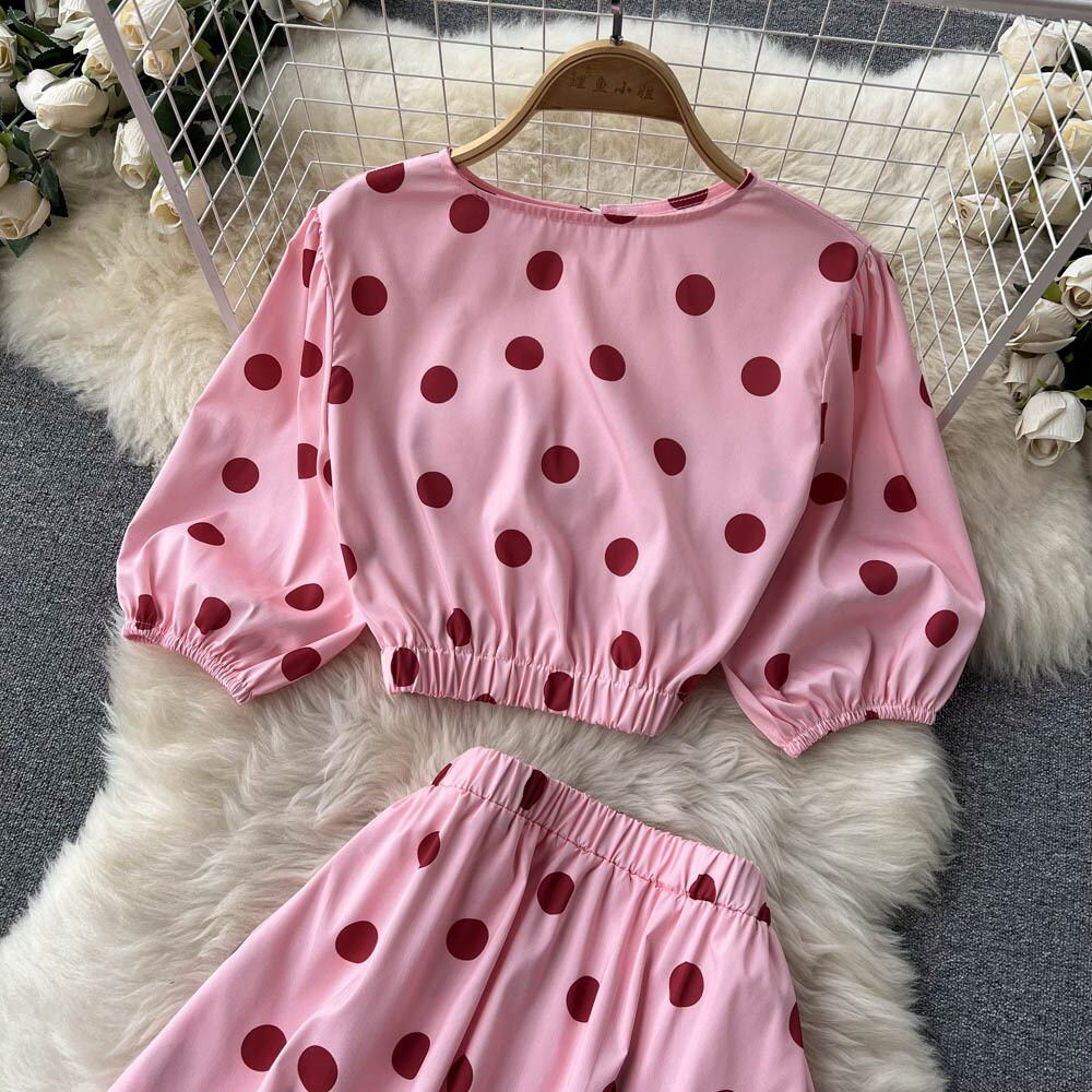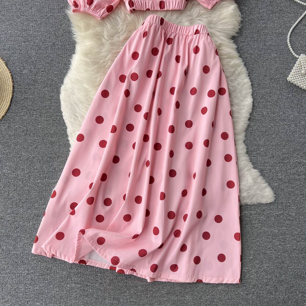 insホリデースタイルファッショナブルなウエスタンスタイルスウィート水玉ショートトップハイウエストスリムスカートツーピーストレンディな女性の夏 ハイウェスト 大人ガーリー キュート カジュアル サマー 夏物 lyxaj34028195191