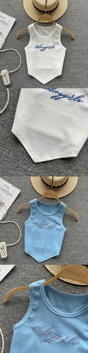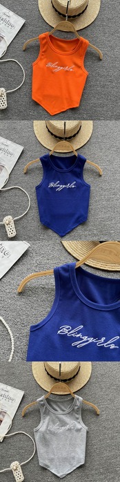 sense, new irregular letter embroidery, sleeveless, slim fit, umbilical sling, short top, vest, women's tide ショート 刺繍 ノースリーブ スリム lyxaj71062525821