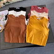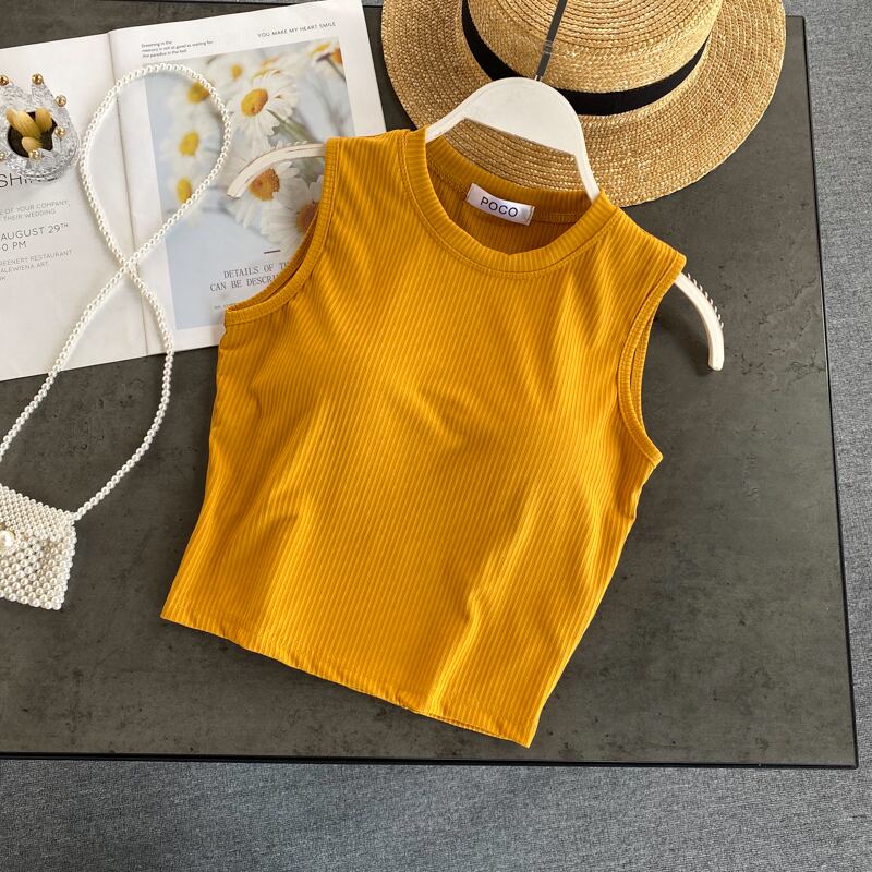 2020年夏のヨーロッパとアメリカンスタイルのレトロなファッションラウンドネックノースリーブチェストパッドハイウエストショートクロップドネーブルネットレッドTシャツトップ女性 ハイウェスト サマー 夏物 Oネック ヨーロピアン lyxaj9214841937