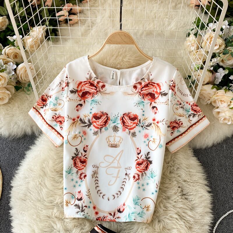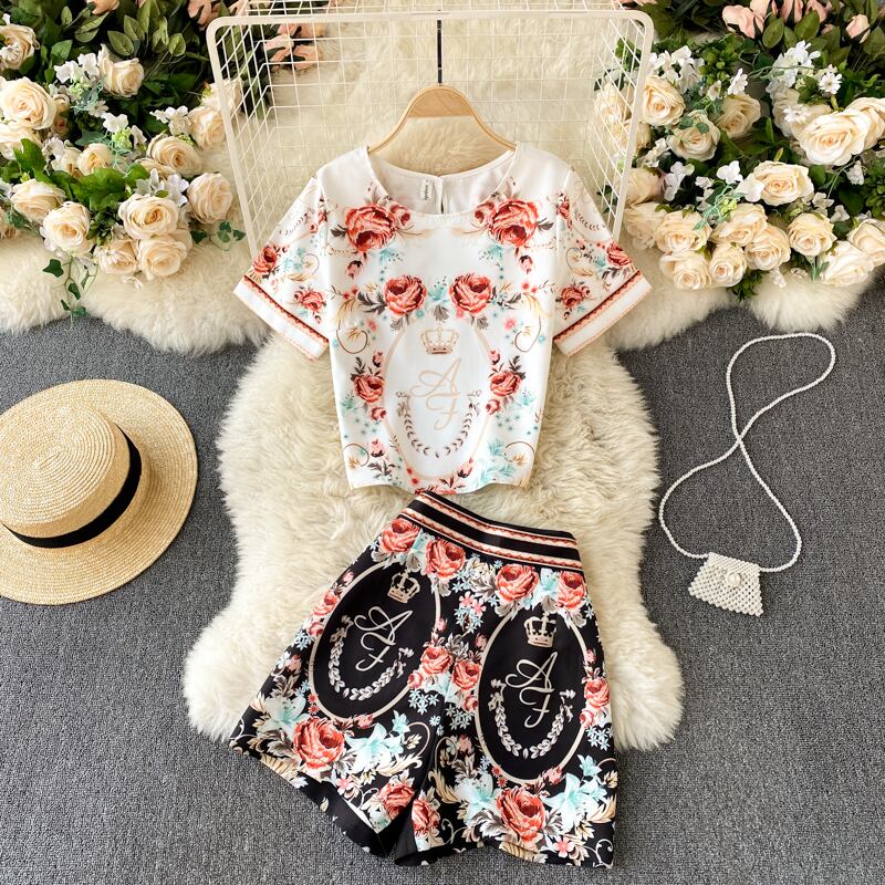 ハイエンドスーツ2021年新作レディースデザインセンスプリントショートトップスハイウエストワイドレッグパンツレディースレディースツーピース ハイウェスト ワイドパンツ lyxaj86387263424