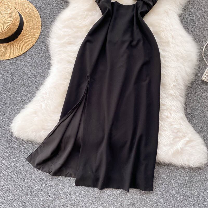 Celebrity dress female hollow design sense chain suspender skirt sexy backless slit dress waist small black dress ブラック スカート チェーン lyxaj63158579834