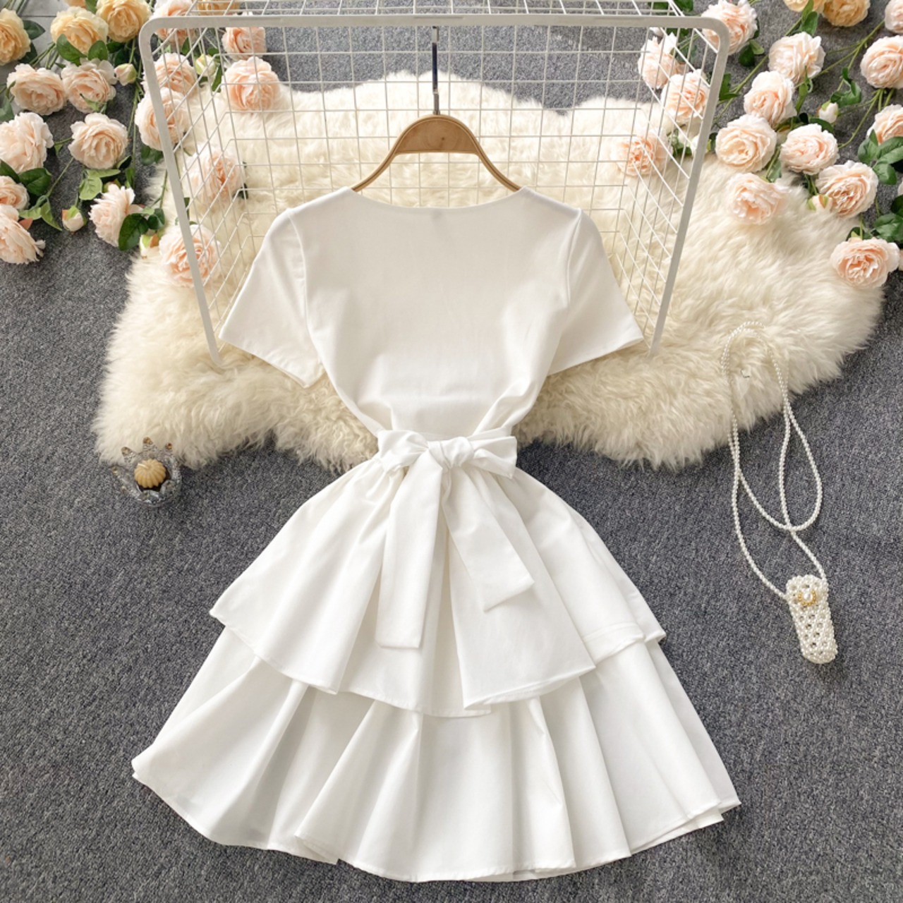 夏のフレンチヘップバーンスタイルの女性の気質は、薄いフリル人形のふくらんでいるスカートの女性のウエストプリーツドレスでした サマー 夏物 lyxaj30634289472