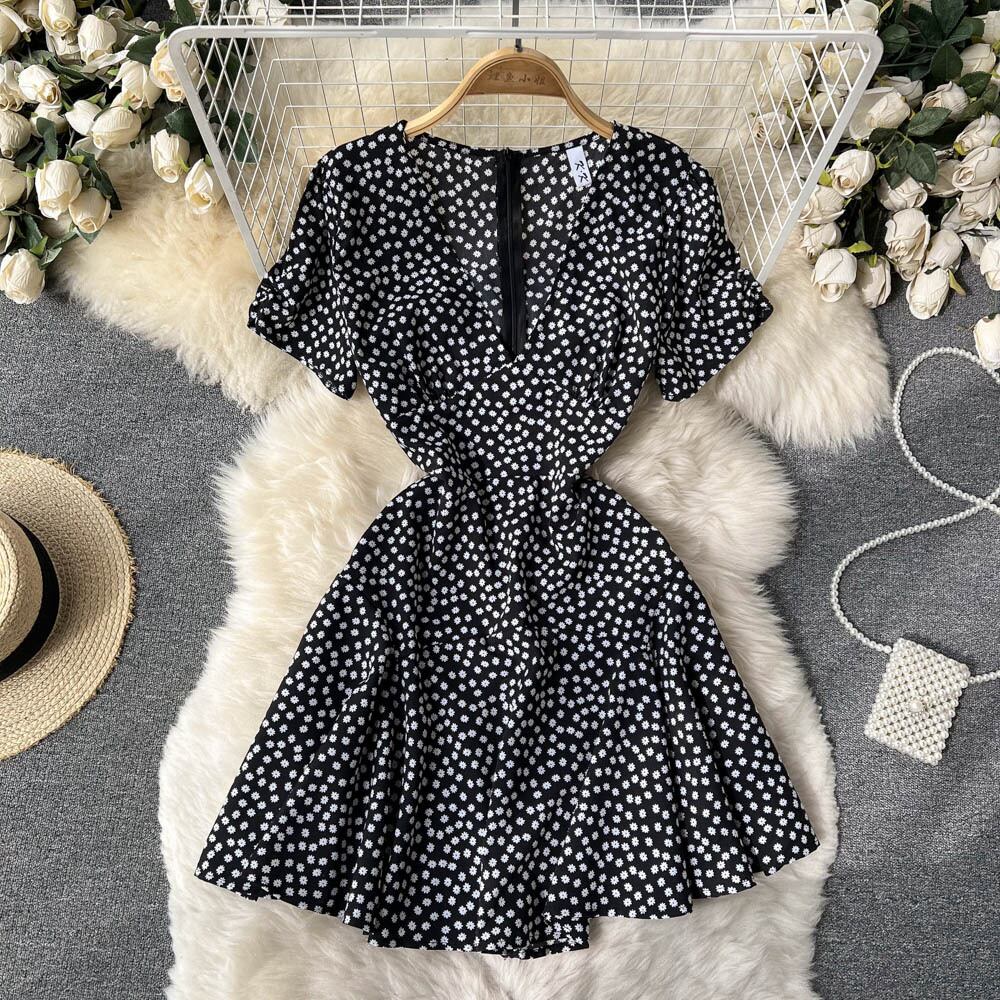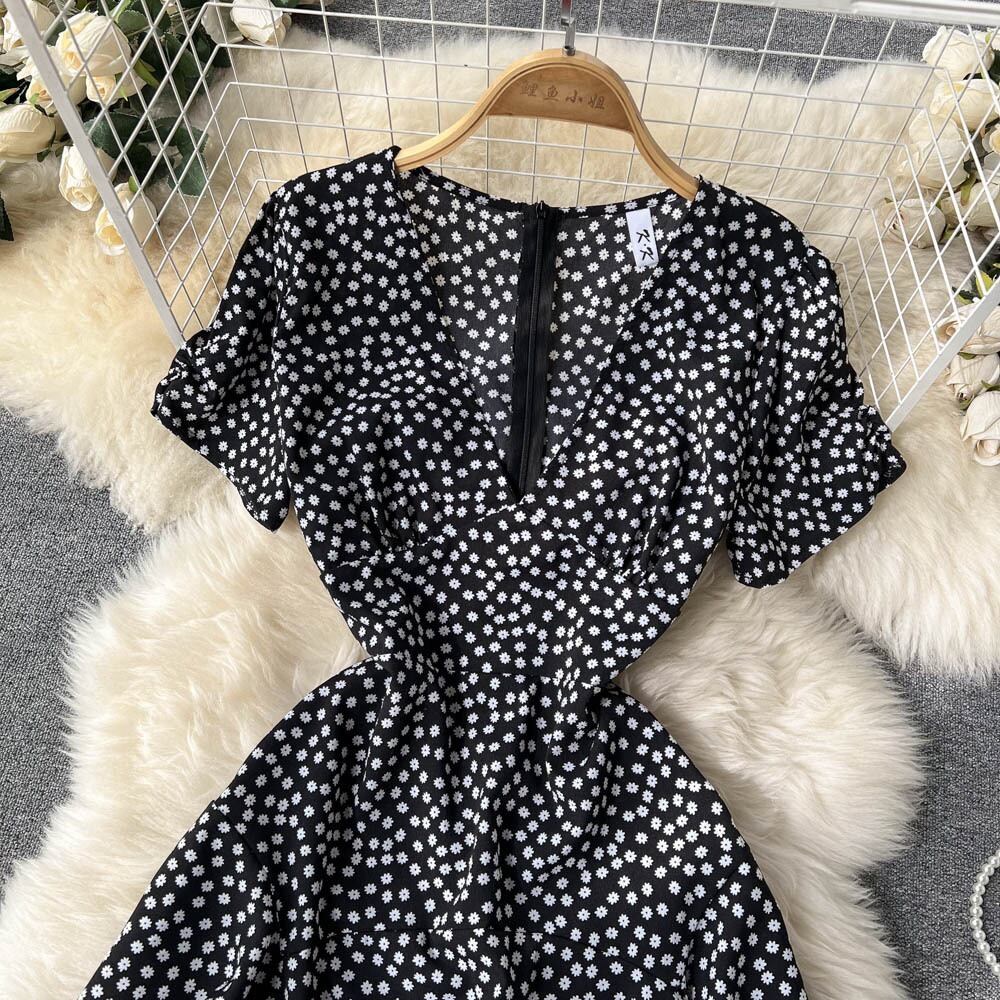 French niche sweet all-match v-neck high waist slim puff sleeve ruffle dress short skirt small skirt female ハイウェスト ショート 大人ガーリー スウィート キュート カジュアル スカート Vネック スリム lyxaj89621975077