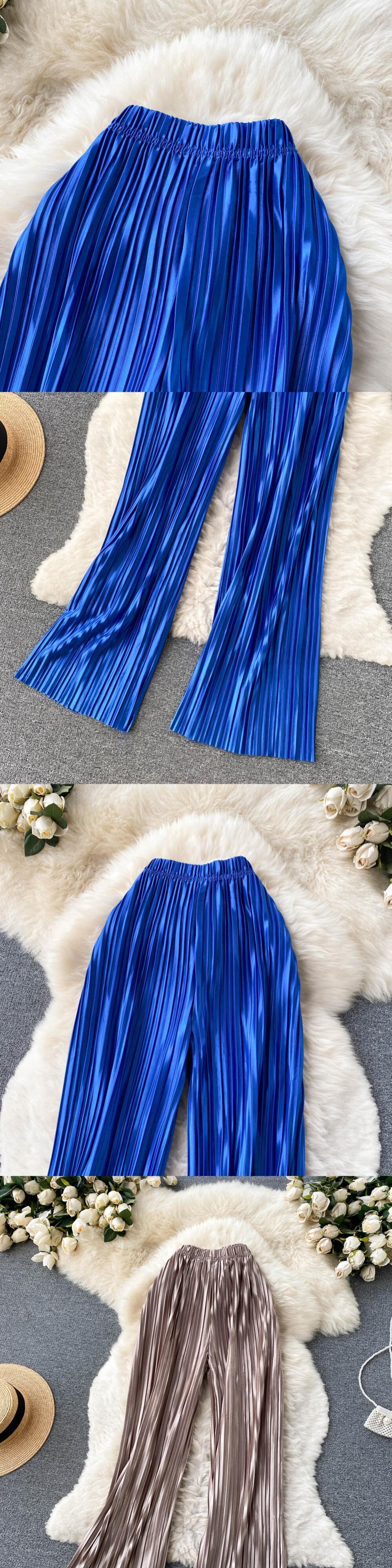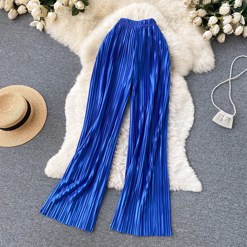 気質レディースファッショナブルシックサテンカジュアルパンツレディース伸縮性ウエストサマープリーツストレートワイドレッグモップパンツ エラスティック 夏物 ワイドパンツ lyxaj58024818848