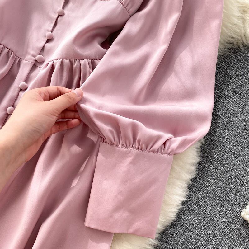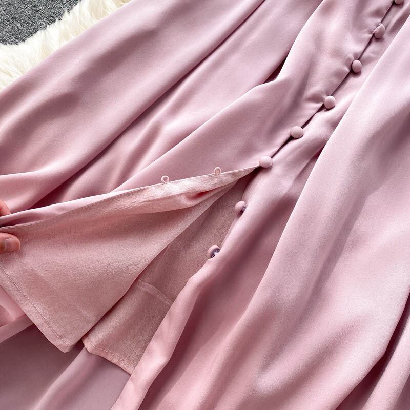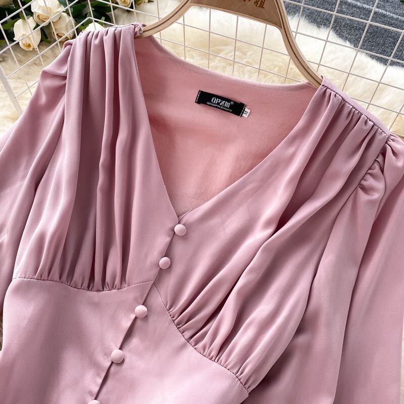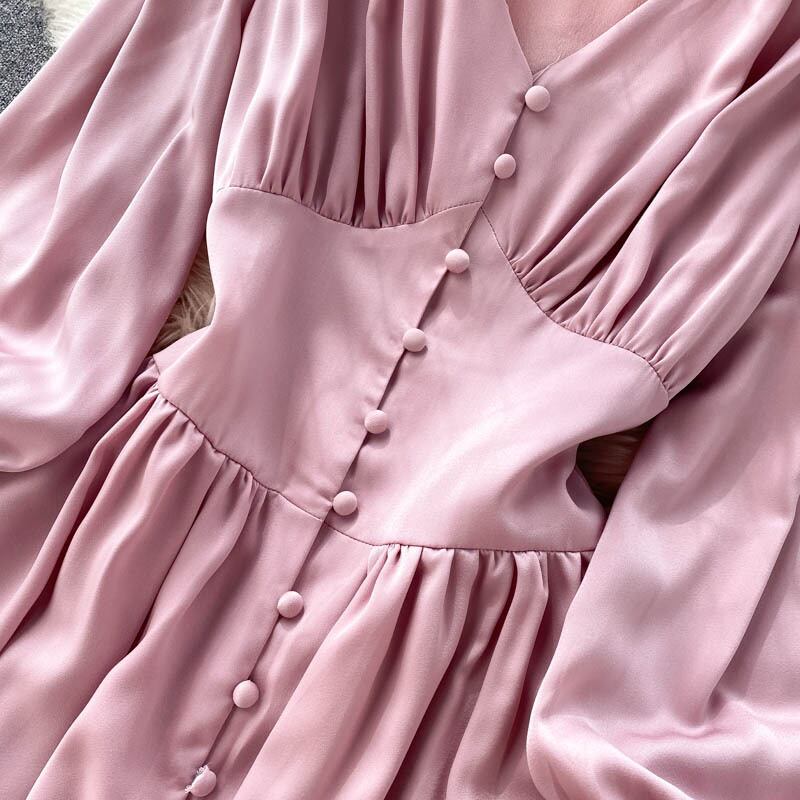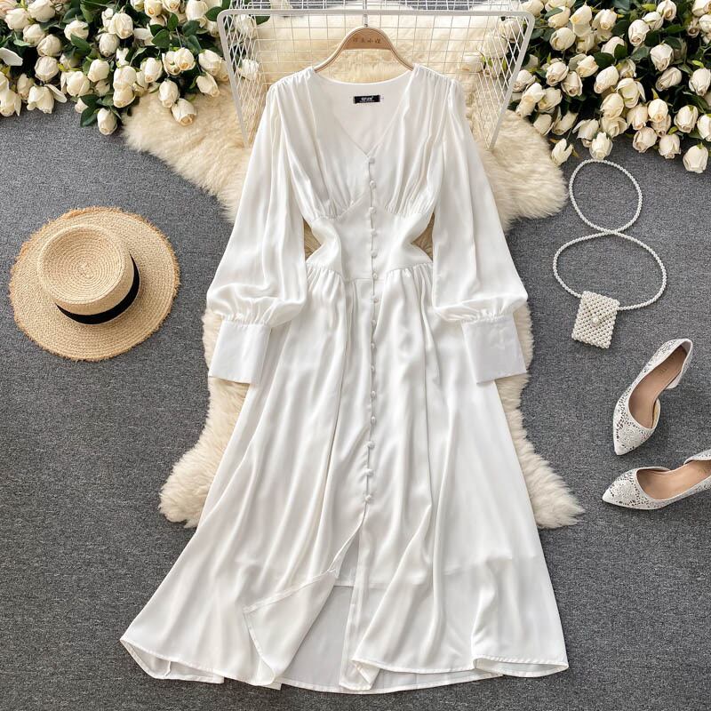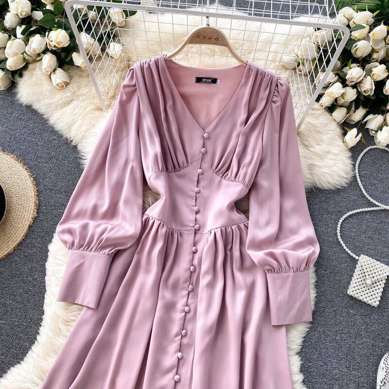 セレブスタイルのスカートハイエンド気質Vネックブレストスリムミドル丈フレンチエレガントパフスリーブドレス女性 lyxaj18641914760