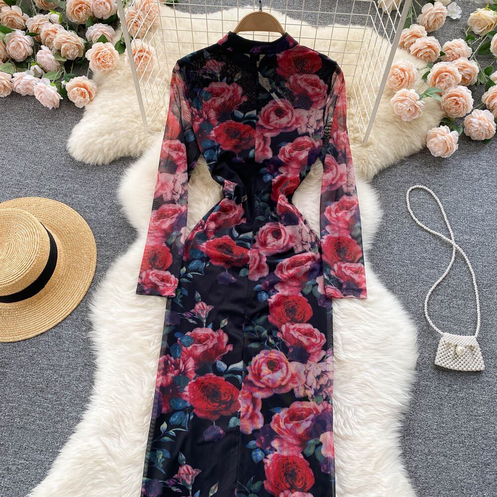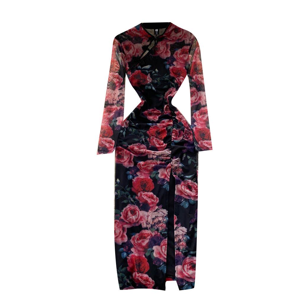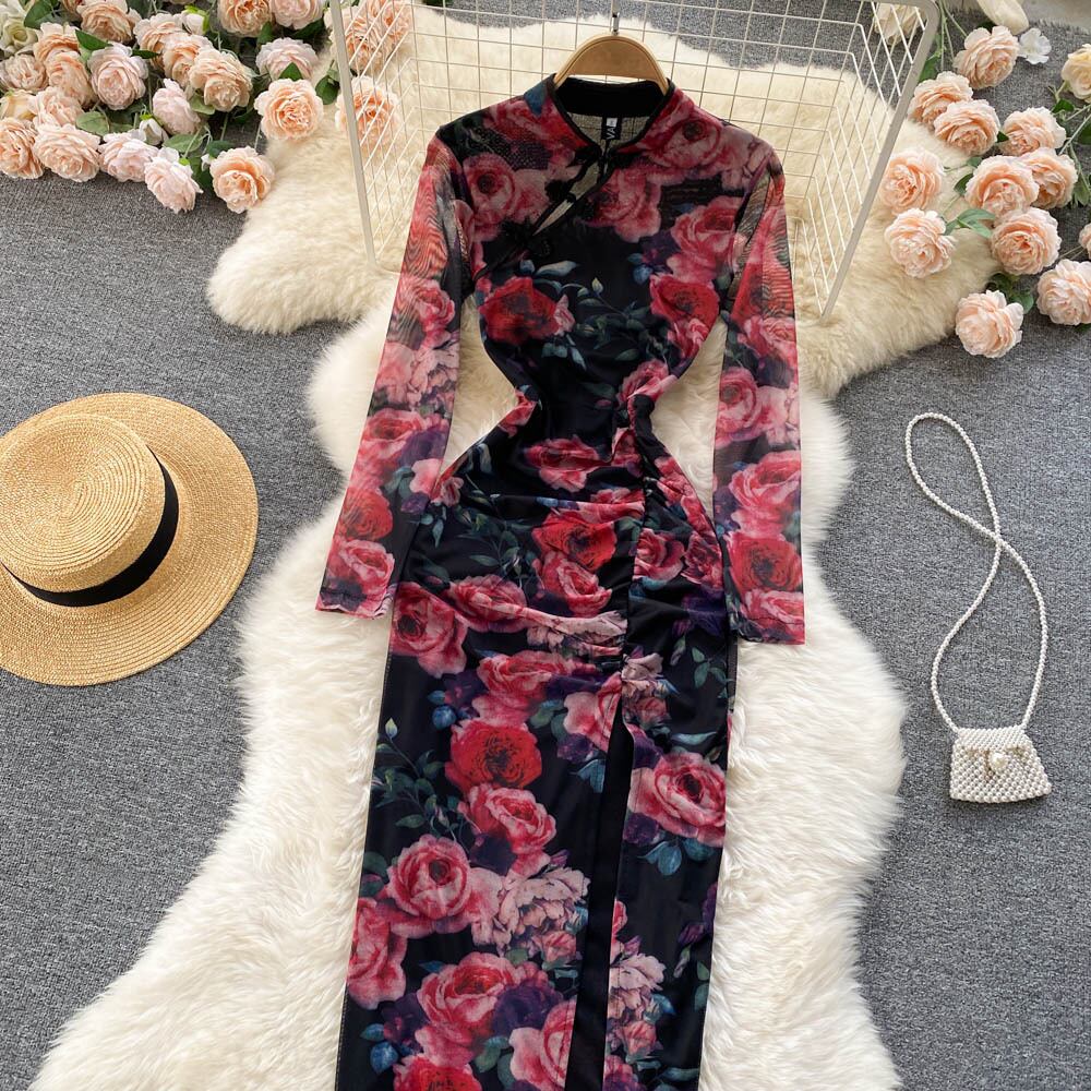 改良されたチャイナドレスハイエンド気質プリントバンケットドレスミドルレングス自家栽培スタンドアップカラーライトクックスプリットヒップドレス lyxaj3546175649