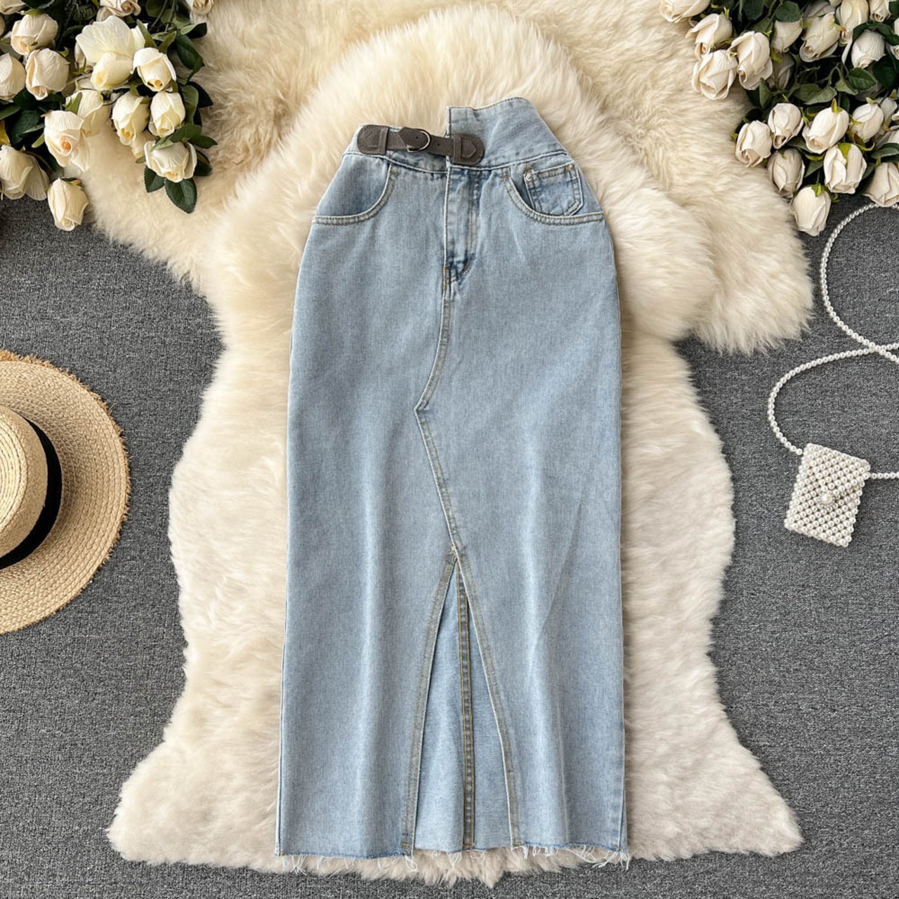 インハイウエストデニムスカートレディース春夏新デザインセンスミドル丈イレギュラースプリットアワードバッグヒップスカートトレンディ ハイウェスト スプリング 春物 サマー 夏物 lyxaj35347973509