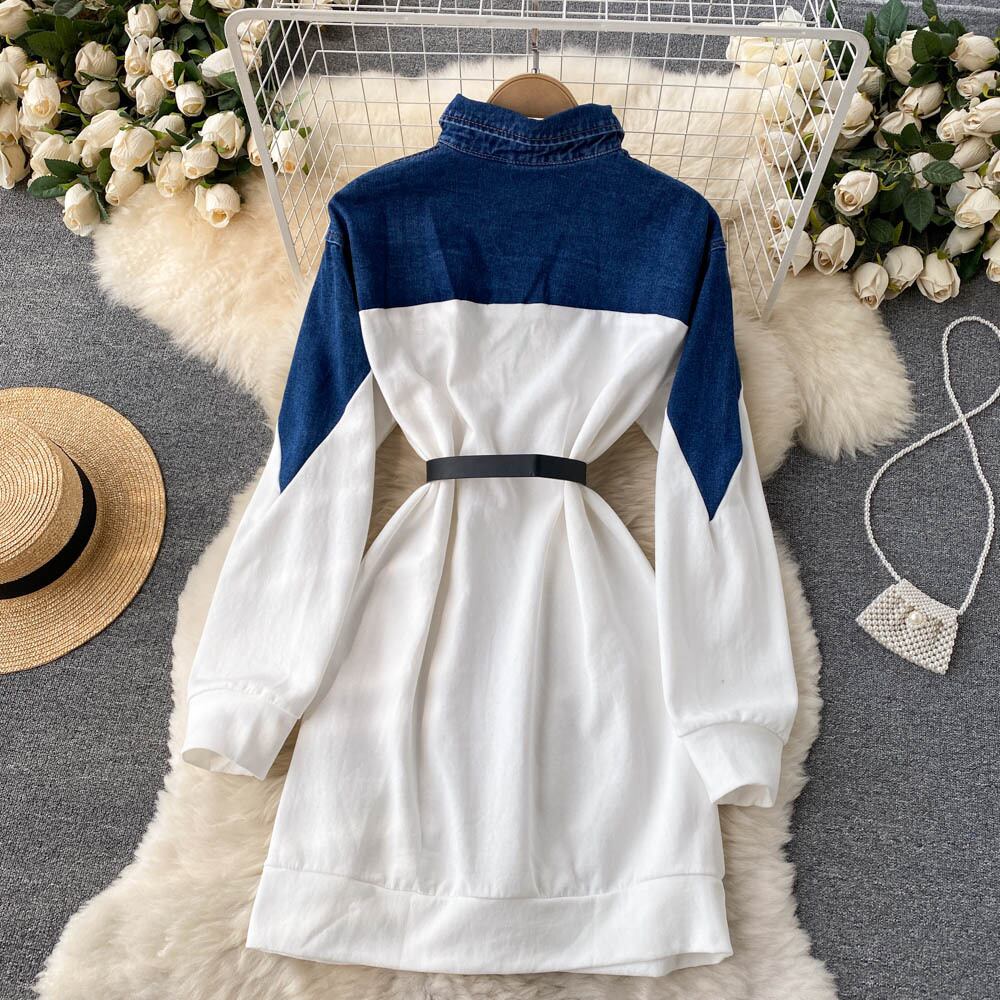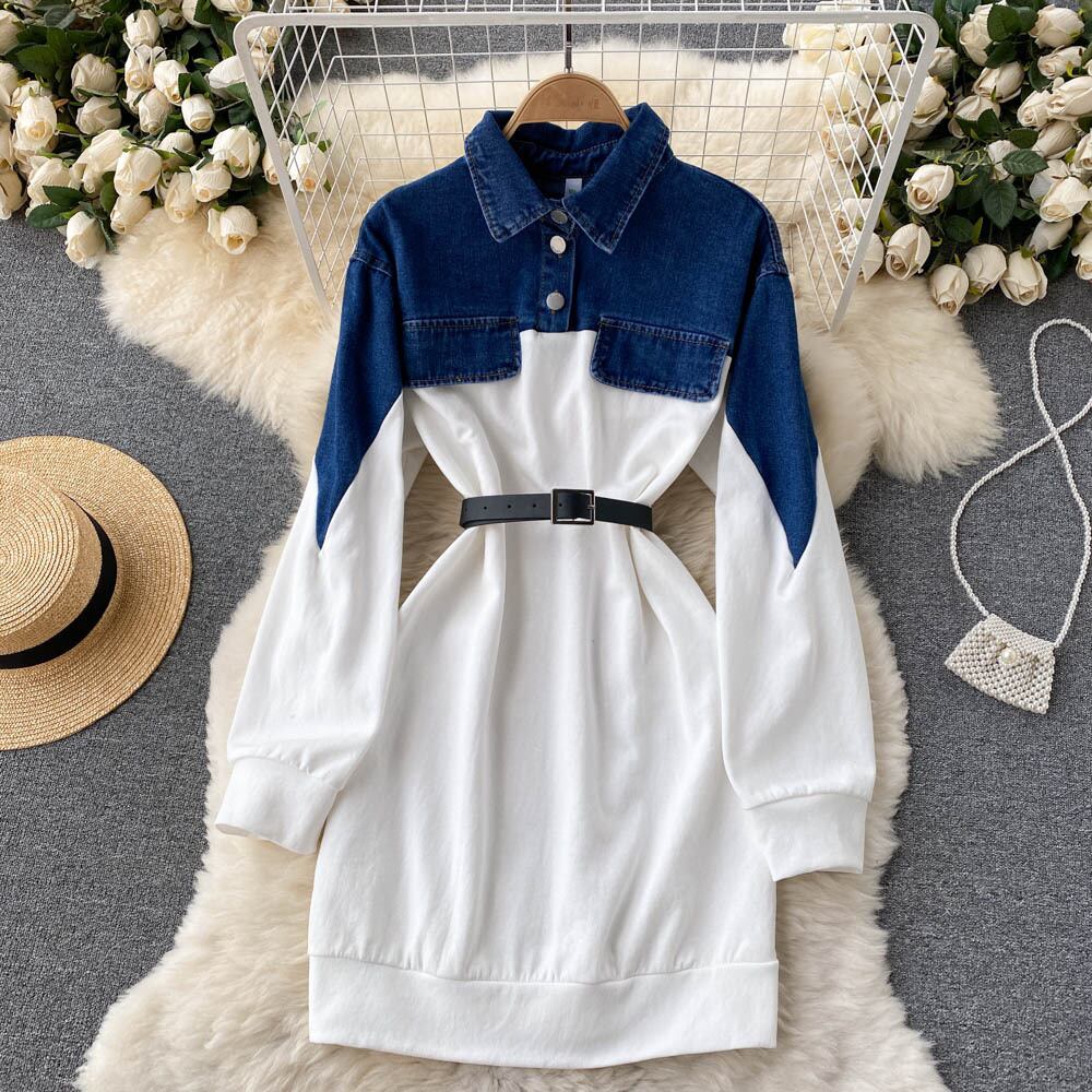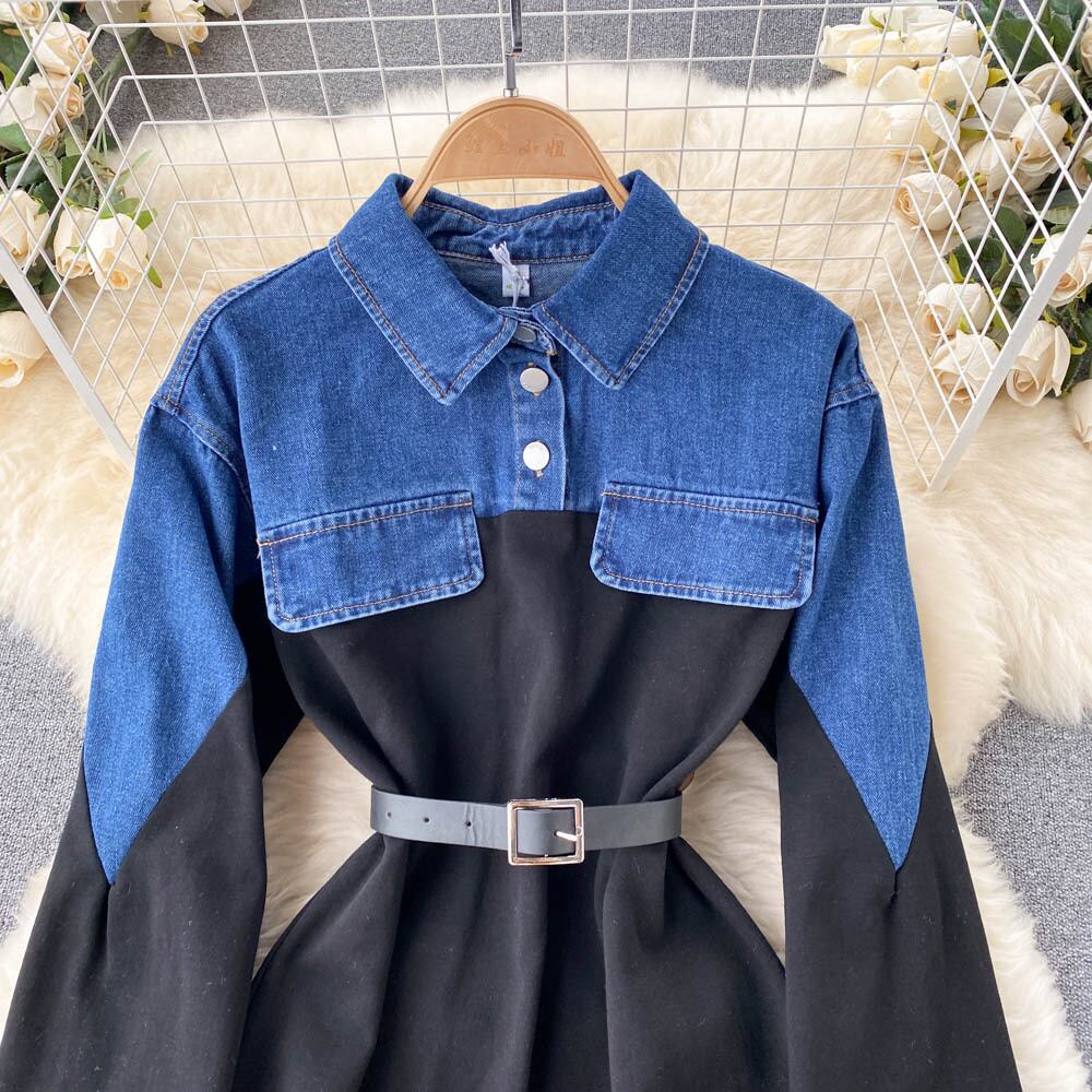 2021年秋新作香港スタイルレトロステッチデニムドレス韓国版年齢を減らす洋風ファッショナブルなオールマッチセータードレス オータム 秋物 lyxaj32968353989