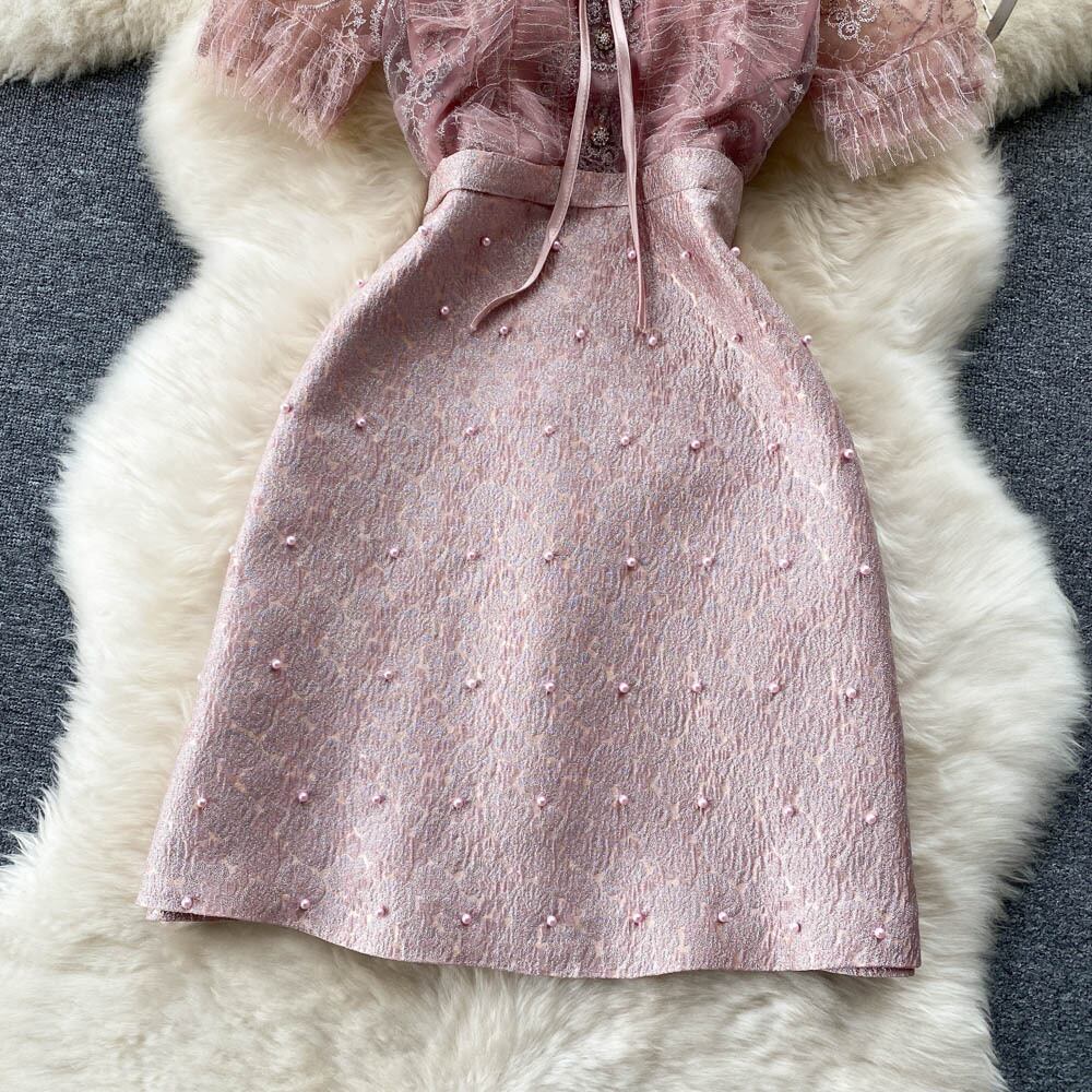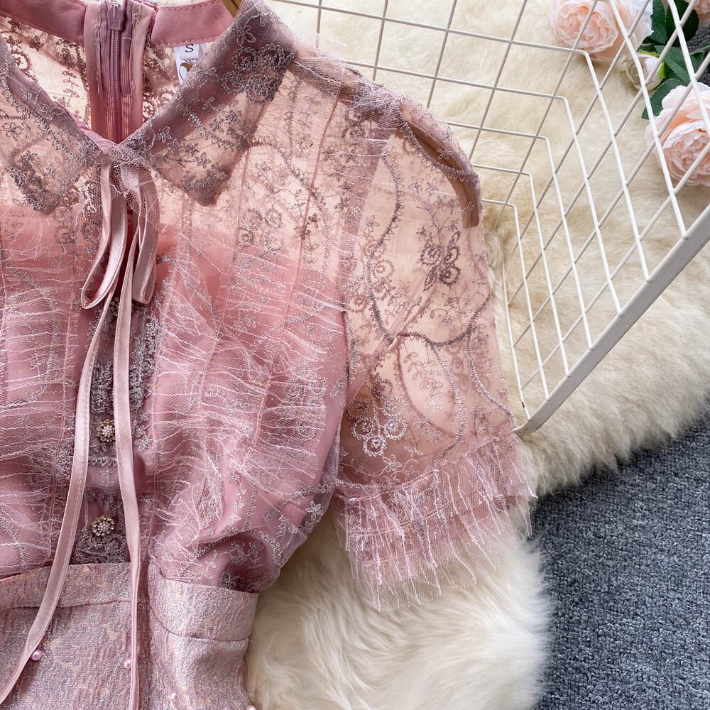 2022年夏新作センススモールフレグランス女性優しい風長袖スリムビーズレースメッシュワンピーストレンディ ロング サマー 夏物 lyxaj97188804693