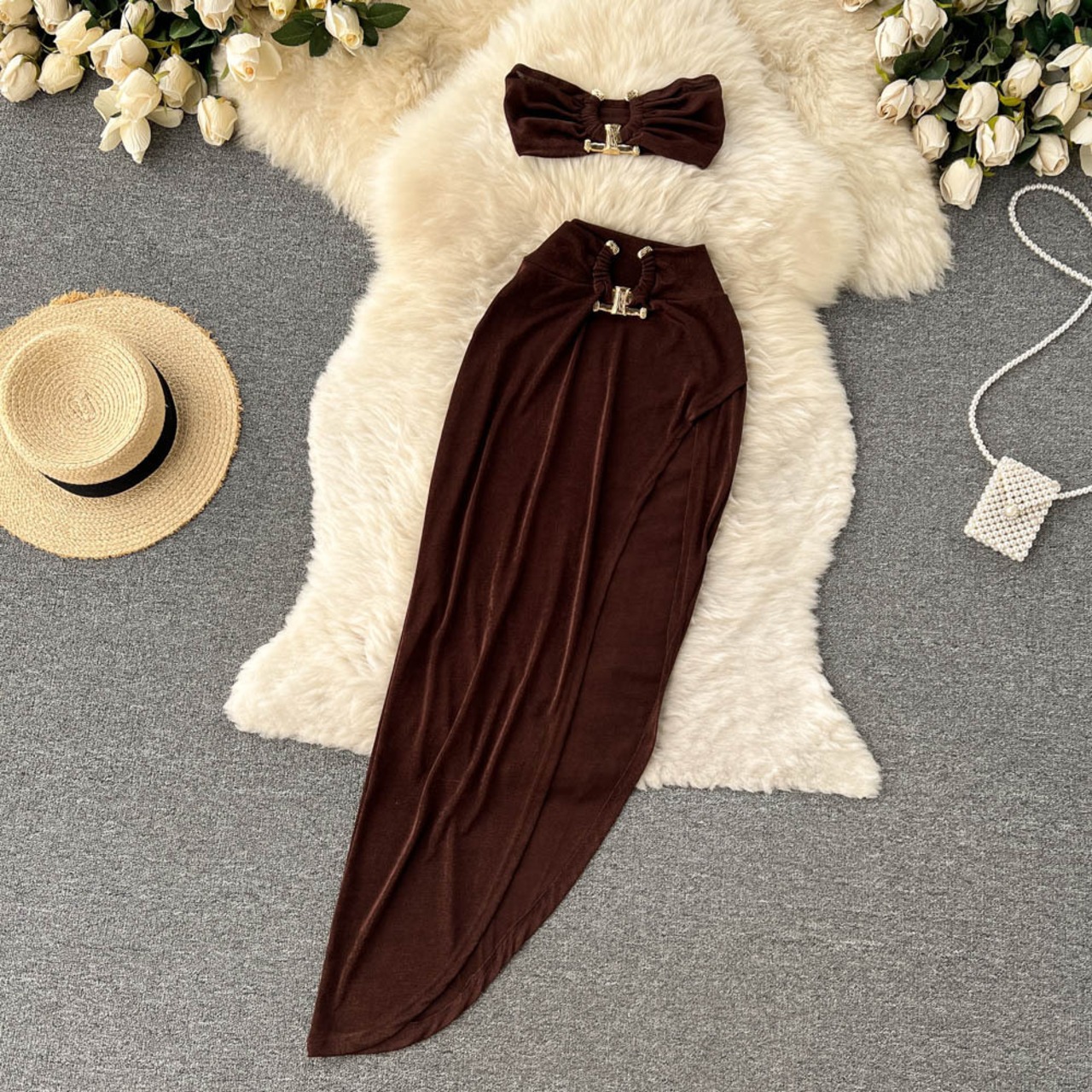 ヨーロッパとアメリカのインデザインセンスニッチ2022夏の新しいセクシーなスリムな不規則なチューブトップスカートツーピーススーツ サマー 夏物 ヨーロピアン lyxaj68011640955