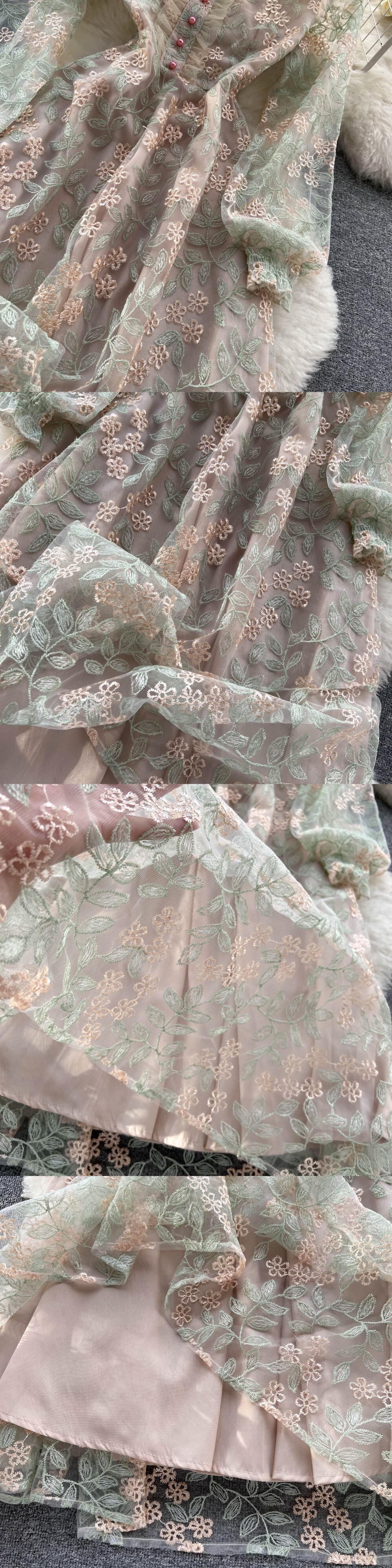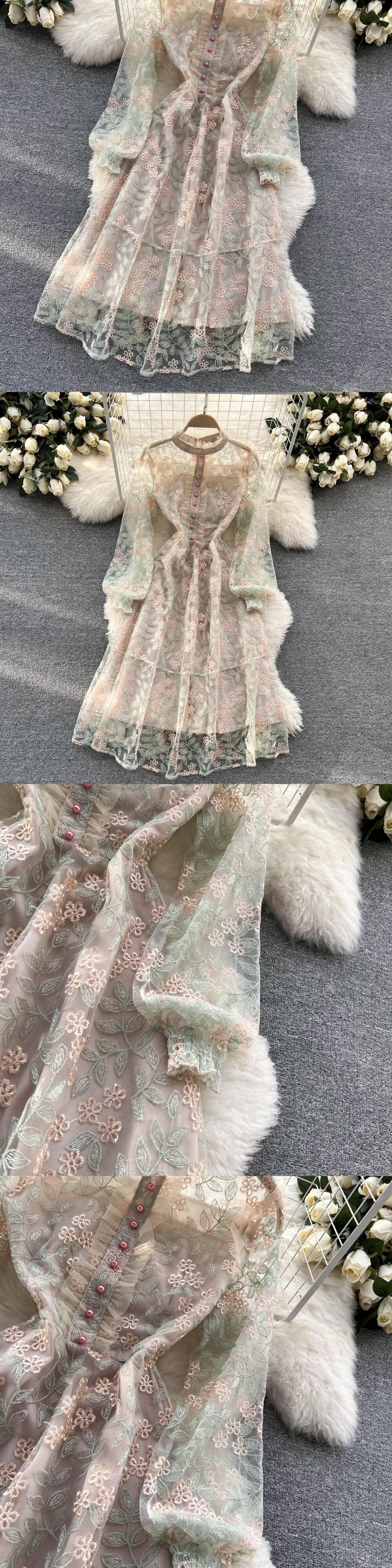 2022年春の新しいレトロ重工業刺繍ドレススカートコートスタイルエレガントなミドル丈メッシュドレス女性 スプリング 春物 lyxaj5991185932