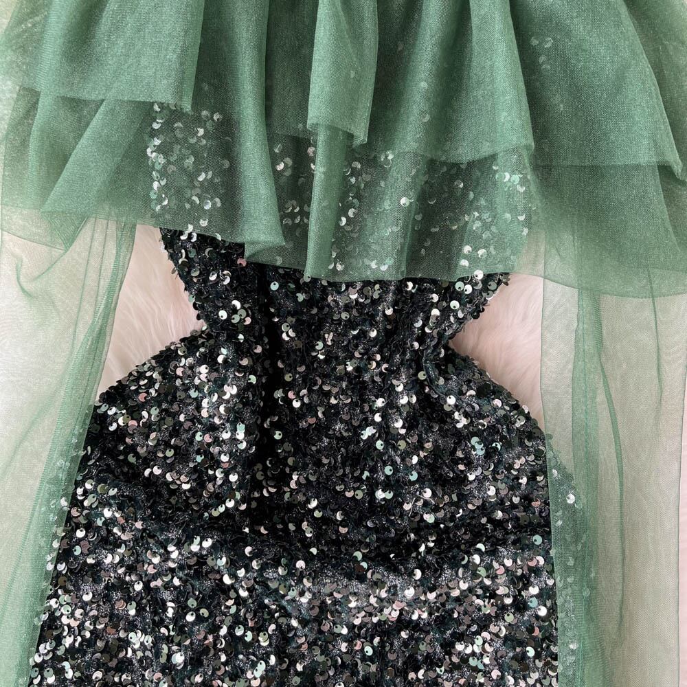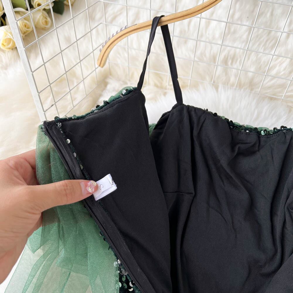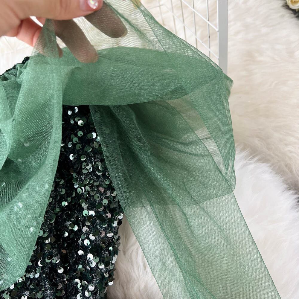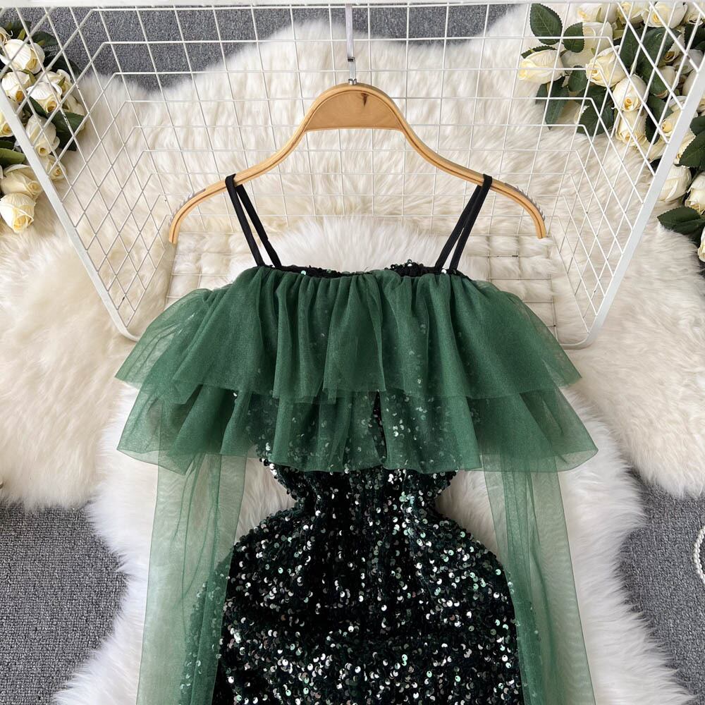 セレブ気質の女神ファンスリングワンワードショルダーメッシュステッチファッショナブルなスパンコールスリムバッグヒップウエストドレス女性 lyxaj82768709481