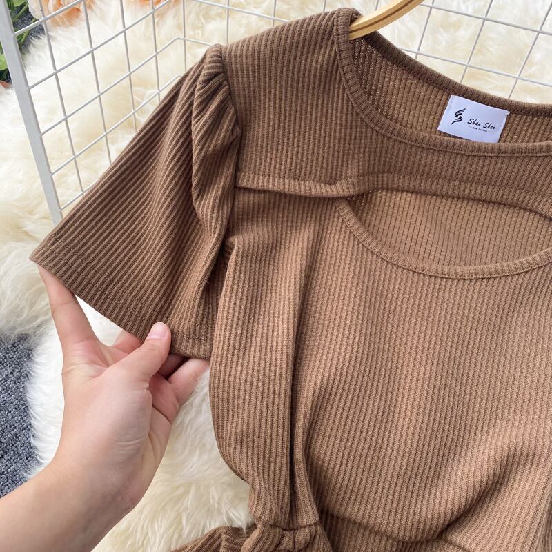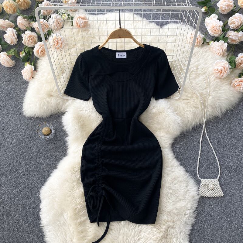 2022 summer new French style light familiar style pleated drawstring hollow dress with waist and temperament bag hips slim skirt プリーツ サマー 夏物 スリムヒップ スカート スリム lyxaj11942911094