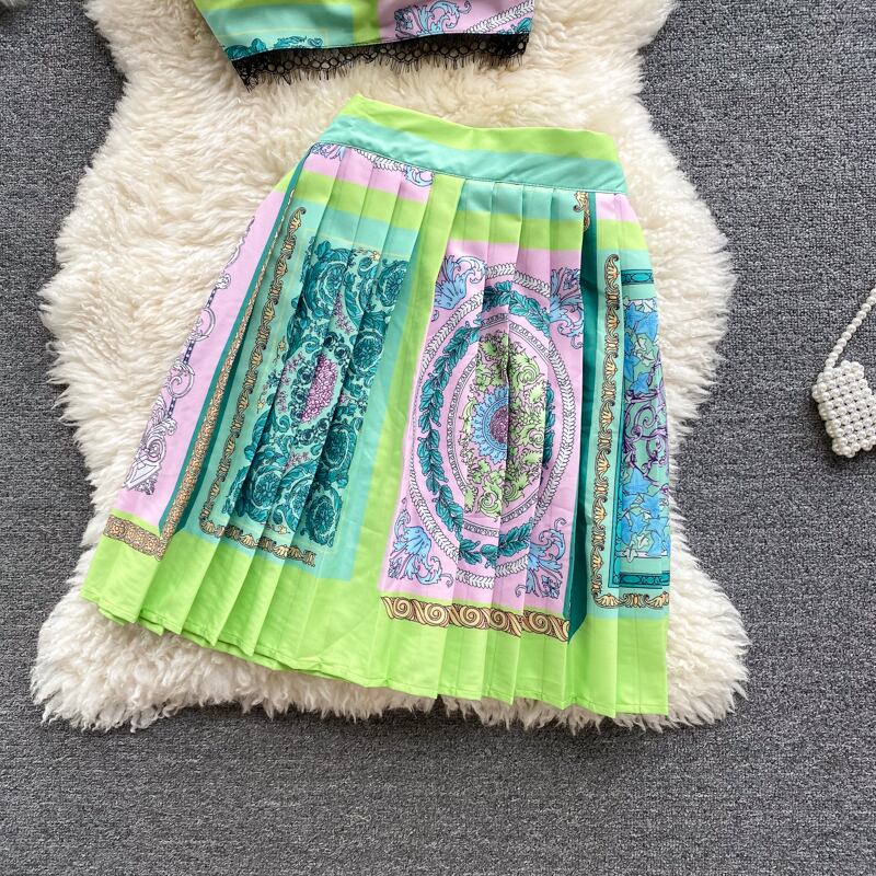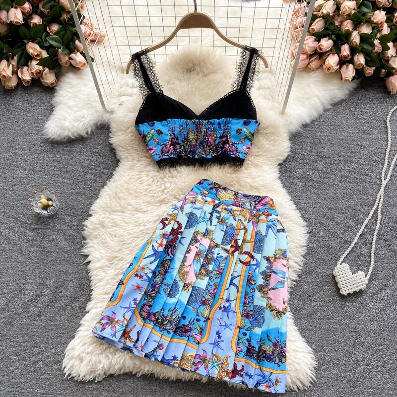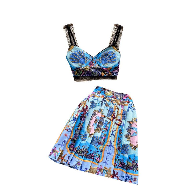 ヨーロッパとアメリカのインホリデースタイルのスーツ女性の夏のショートキャミソールデザインセンスプリントスカートツーピースタイド サマー 夏物 ヨーロピアン lyxaj8473387356