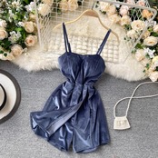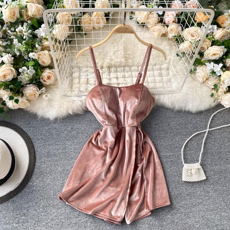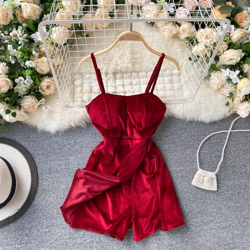 ヨーロッパとアメリカのイン秋と冬の新しいレトロなベルベットサスペンダージャンプスーツの女性のデザインセンス偽のツーピースウエストワイドレッグショーツ オータム 秋物 ウィンター 冬物 ブルマー ヨーロピアン lyxaj63811066555