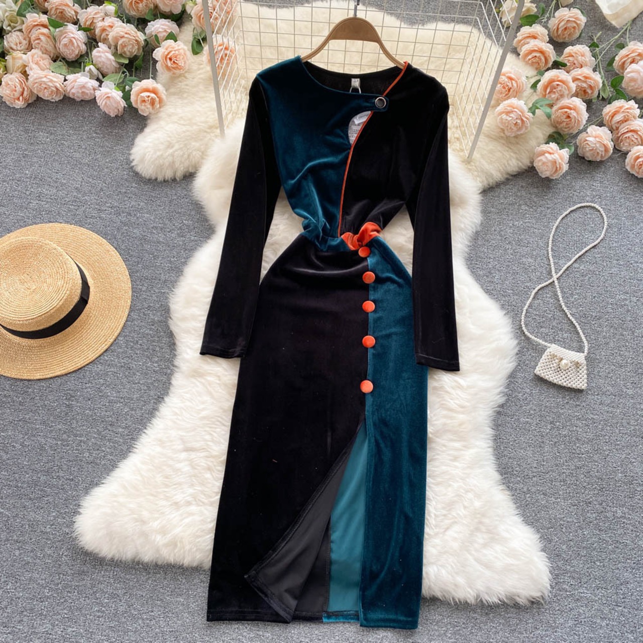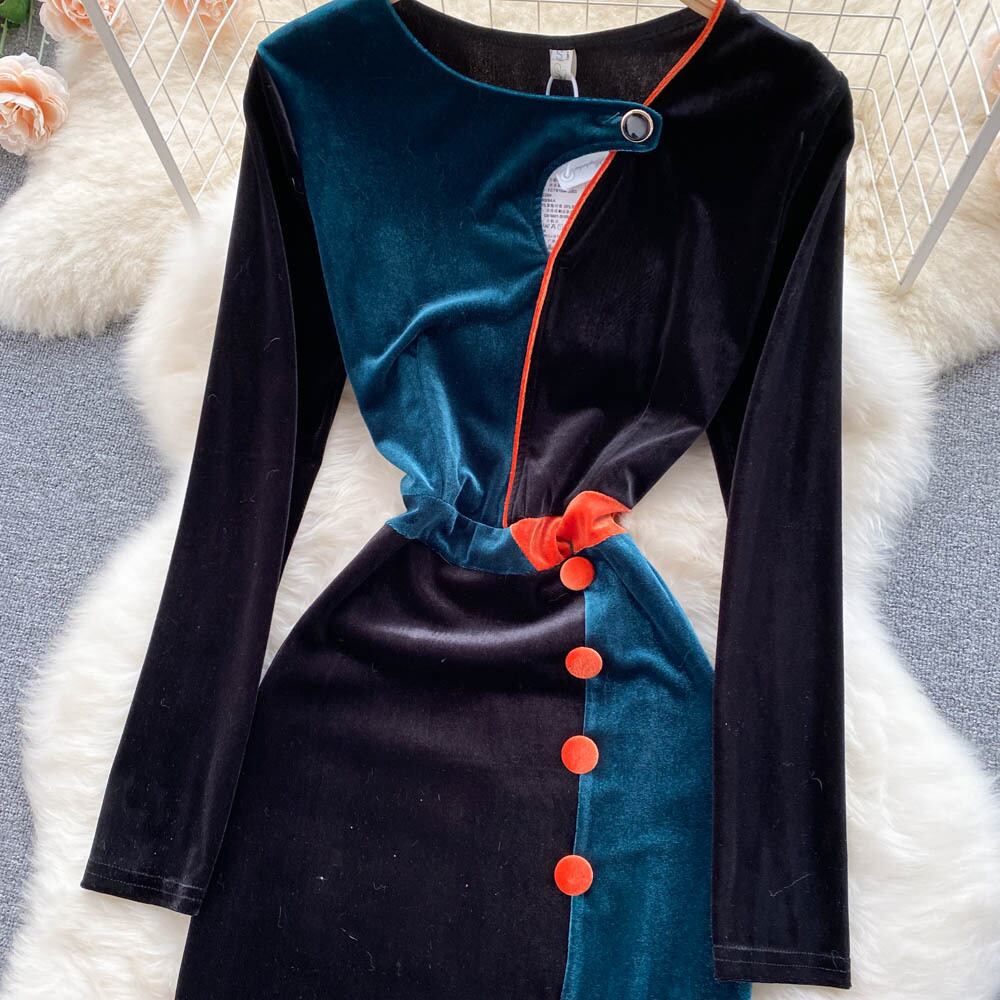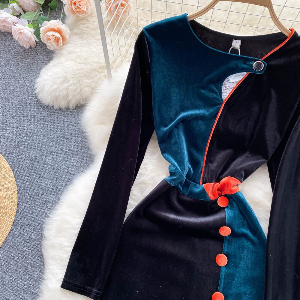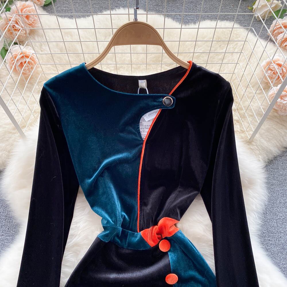 セレブ気質のハイエンドイブニングドレススカートウエスタンスタイルのウエストと薄いフレンチレトロベルベットスプリットヒップドレス lyxaj88269202903