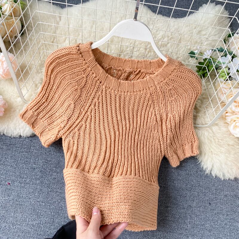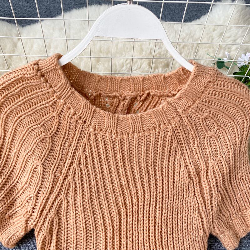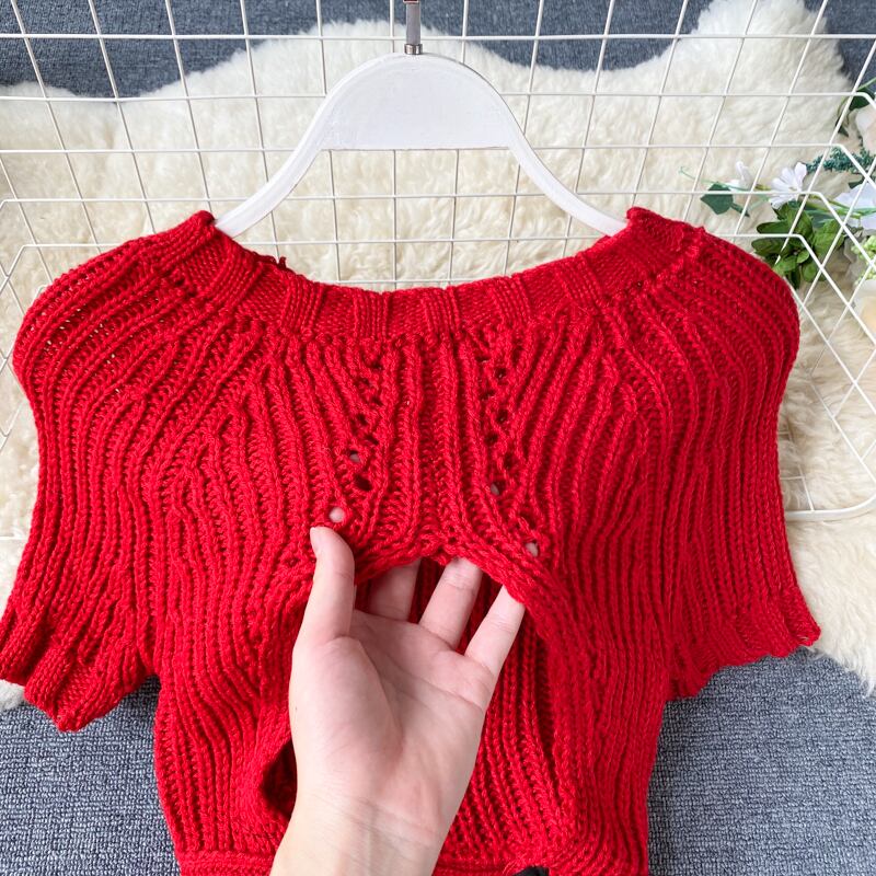 ネットレッドハートマシーンホローアウトバックネクタイウエストウエストスリムオールマッチショートおへそトップレディース半袖ニットセーターTシャツ ハーフスリーブ lyxaj28578246530