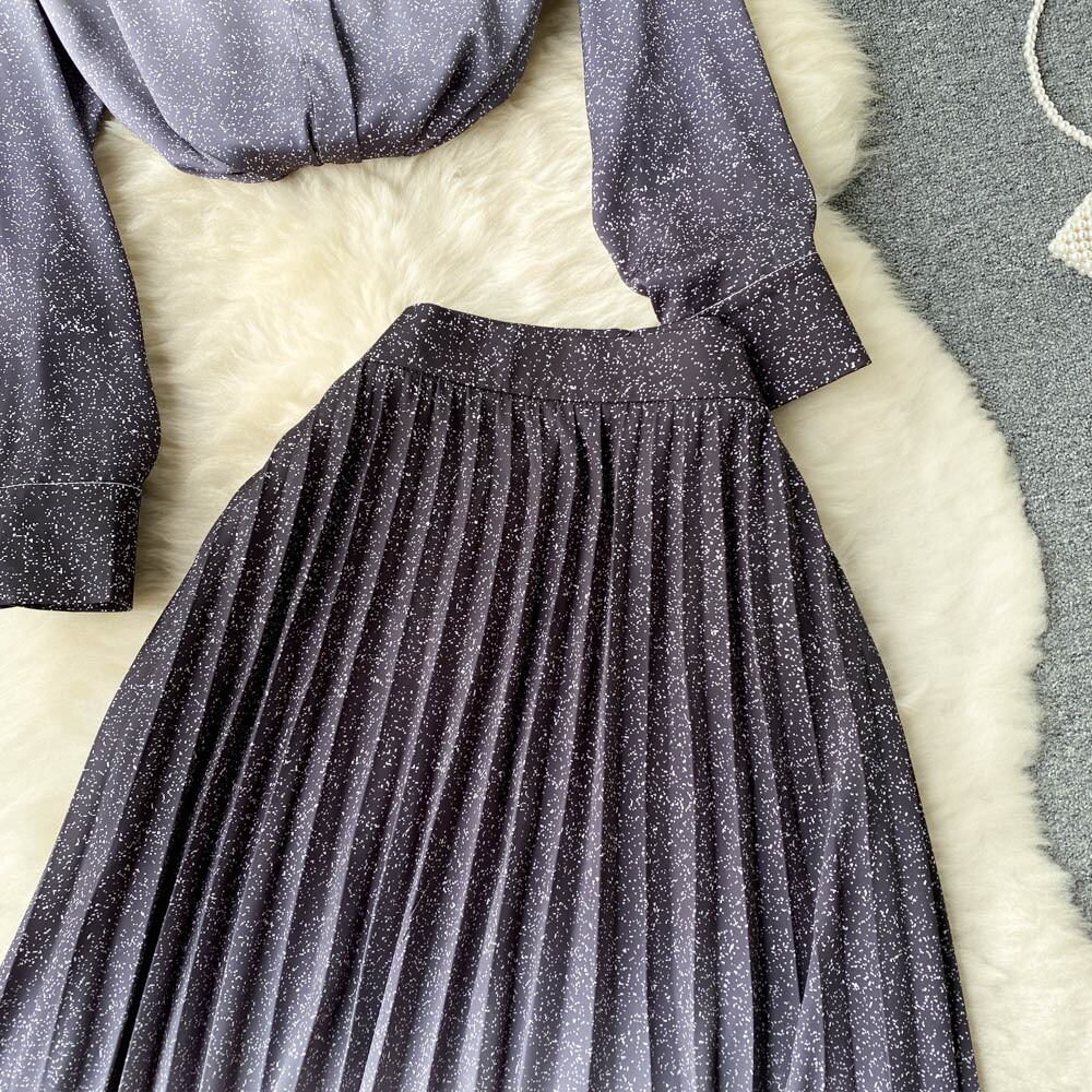 2022年春着グラデーション星空スーツレディーススリム長袖トッププリーツスカートライトおなじみスタイルツーピースセット ロング スプリング 春物 lyxaj15478804259