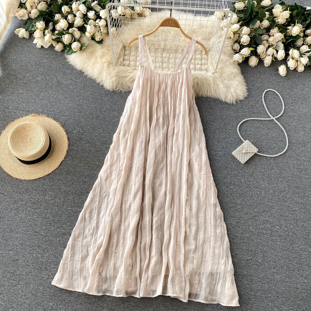 Hainan Sanya Travel Shooting Holiday Skirt Seaside Beach Skirt Backless Long Skirt Loose Temperament Super Fairy Sling Dress ロング ビーチ スカート lyxaj17477580331