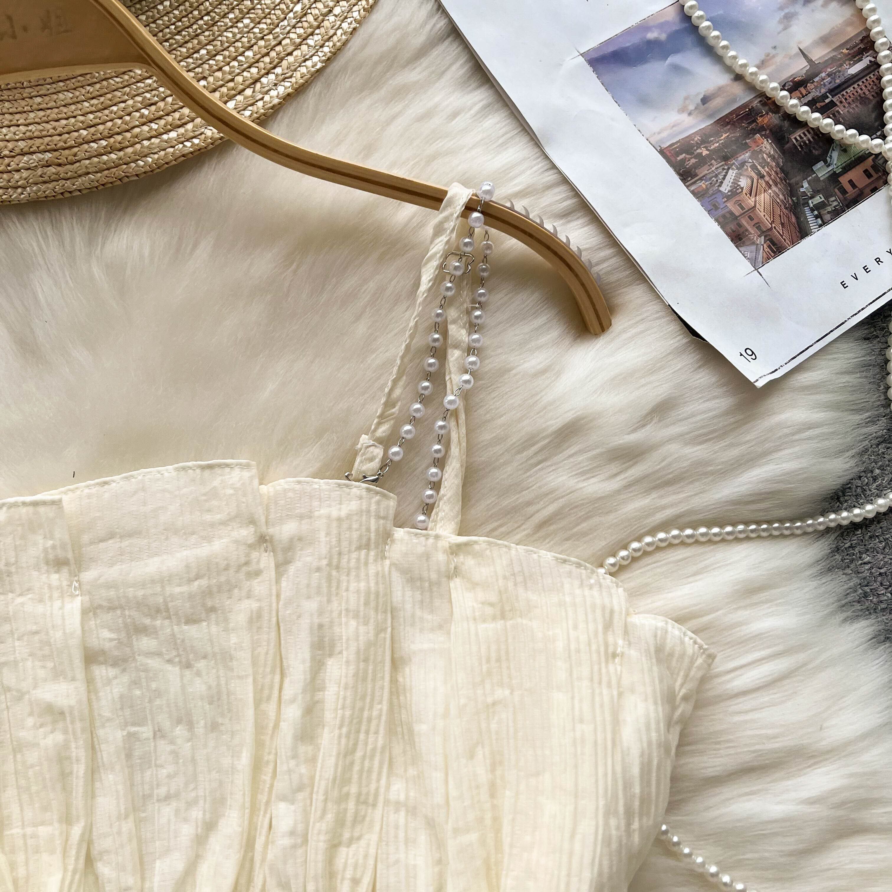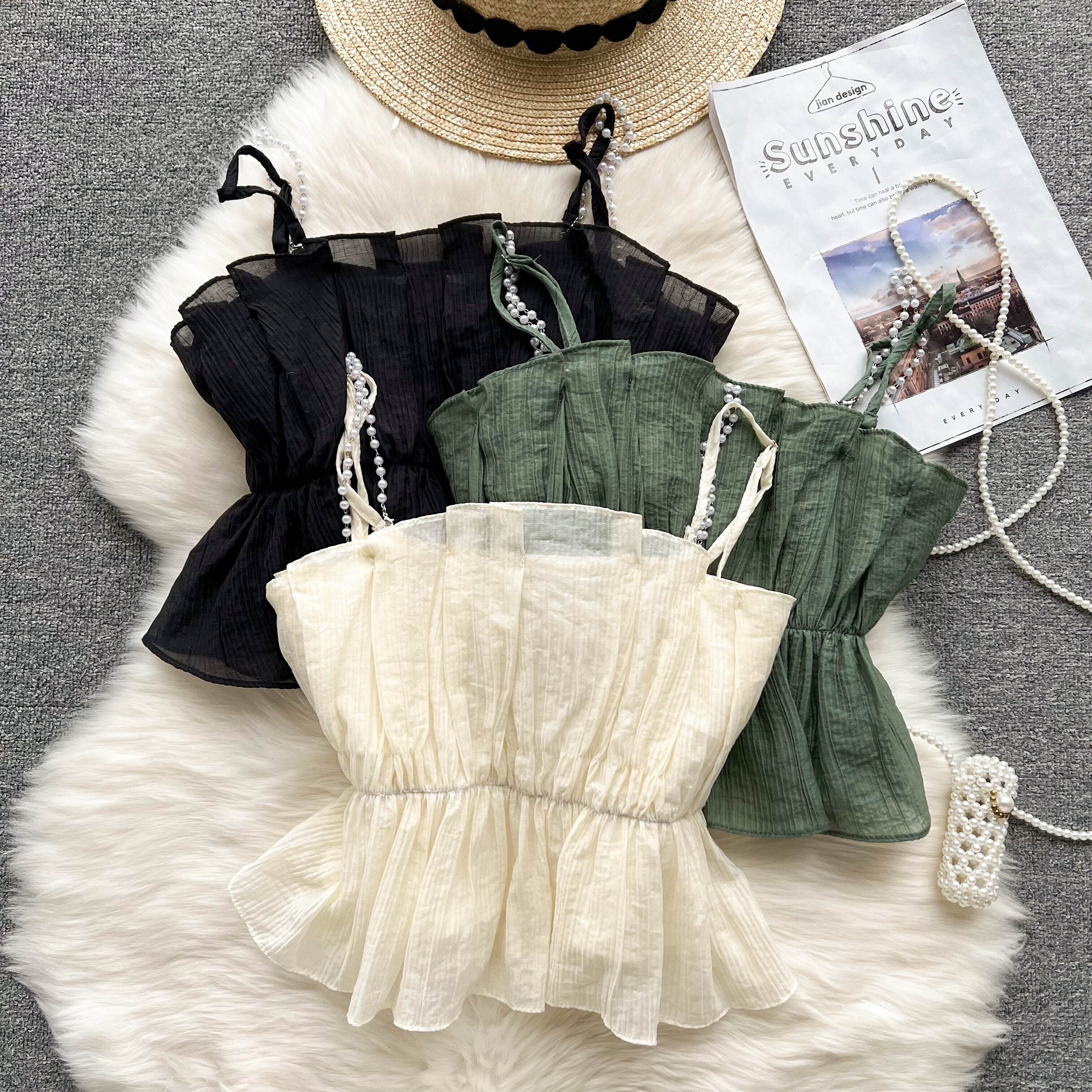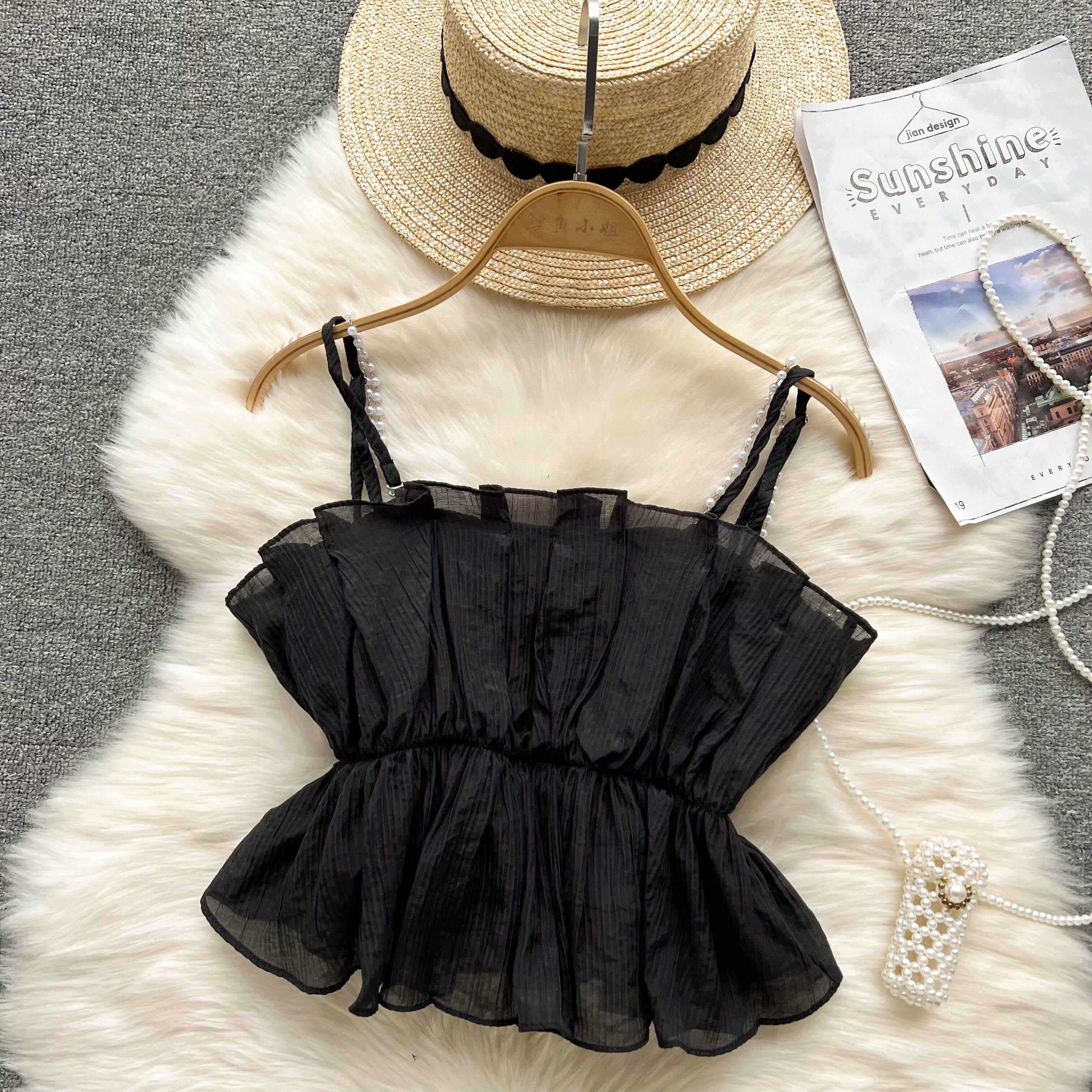 デザインセンスパールキャミソールショートトップレディースプリーツ菌エッジネットレッドラップチェストボトミングシャツセクシーチューブトップ 真珠 lyxaj47359052943