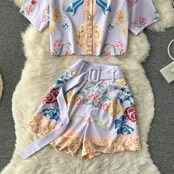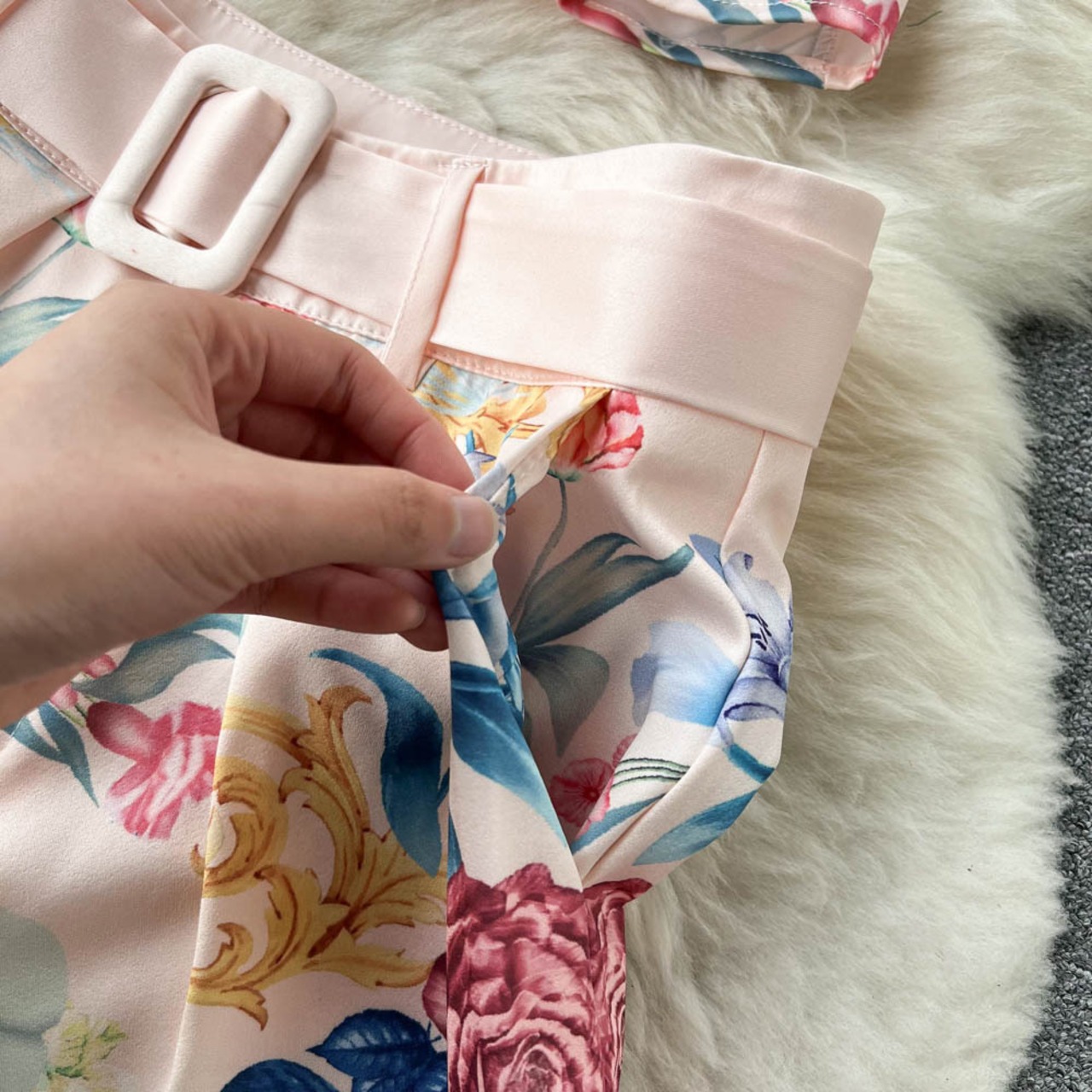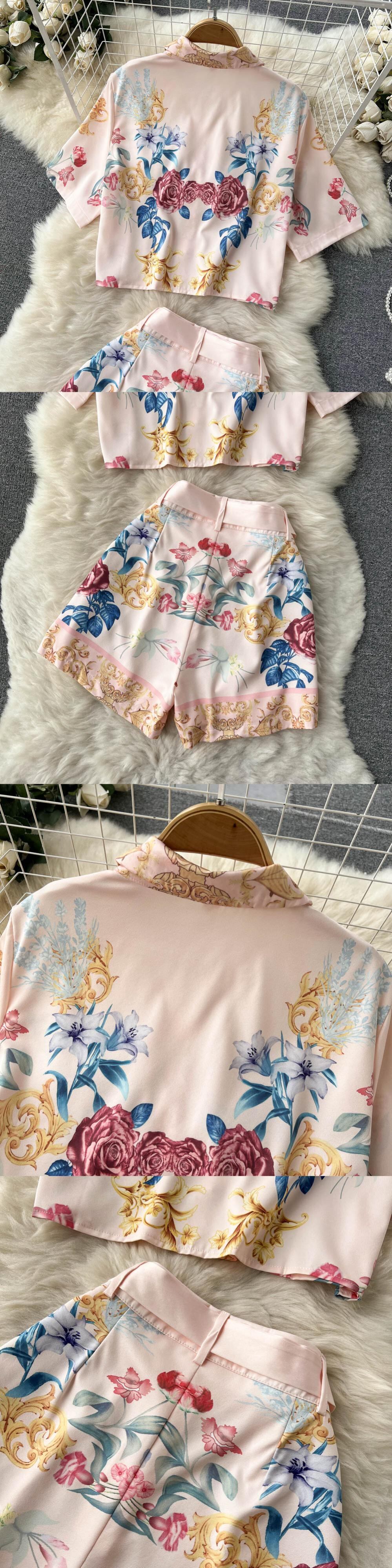 ヨーロッパとアメリカの夏の新しいファッション半袖ニッチウエスタンスタイルシャツ女性のハイウエストワイドレッグショーツプリントツーピーススーツタイド サマー 夏物 ブルマー ヨーロピアン lyxaj6385372135