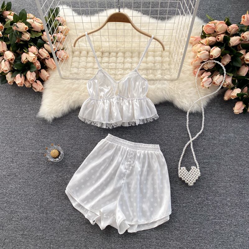 Celebrity temperament suit 2021 new women's sweet pajamas style camisole short wide-leg pants two-piece tide ショート 大人ガーリー スウィート キュート カジュアル lyxaj41548546063