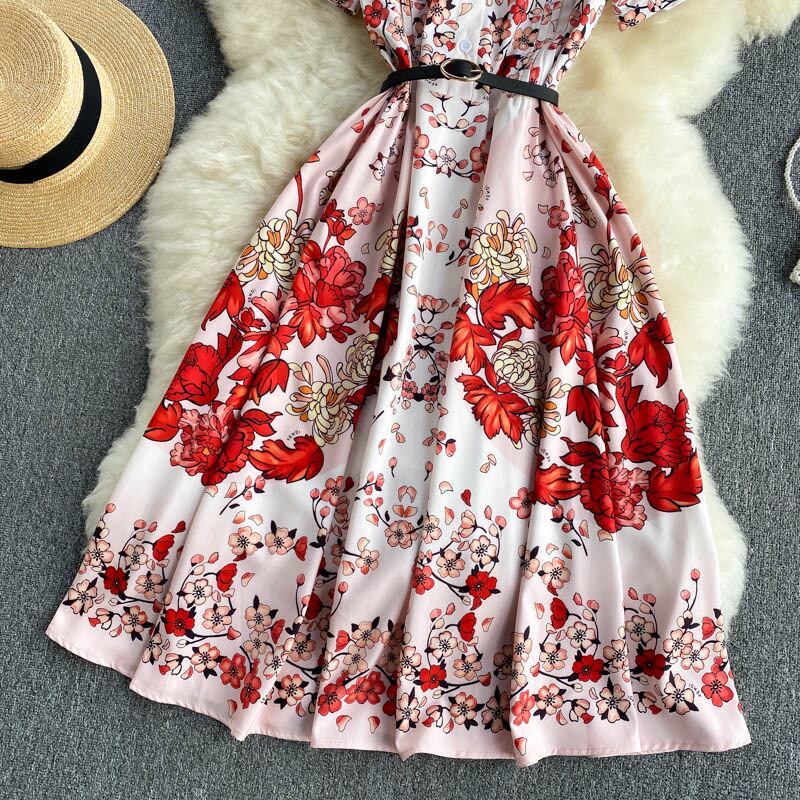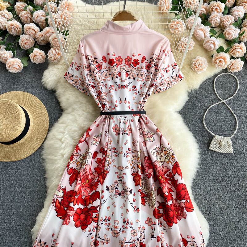 半袖シャツレディースデザインセンスニッチプリント気質ポロカラー重工業プリーツスリムミドル丈ワンピースレディース lyxaj16400390493