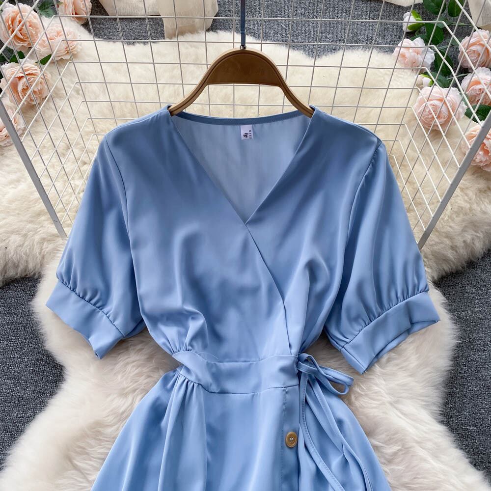 おしゃれなレディースウエストとスリムなVネック半袖ワンピース2022年夏の新作エレガント気質大スイングワンピース ロング サマー 夏物 スカート lyxaj51944879625