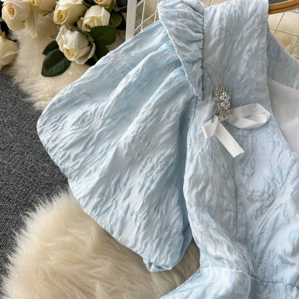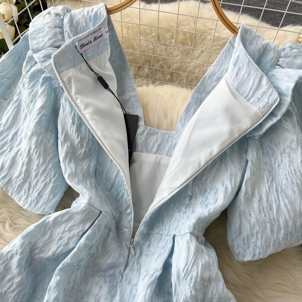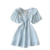 夏フレンチロマンティックレトロ刺繡ジャカードVネック半袖デザインニッチドレスドールショートスカートトレンド 刺繍 サマー 夏物 lyxaj38696601542