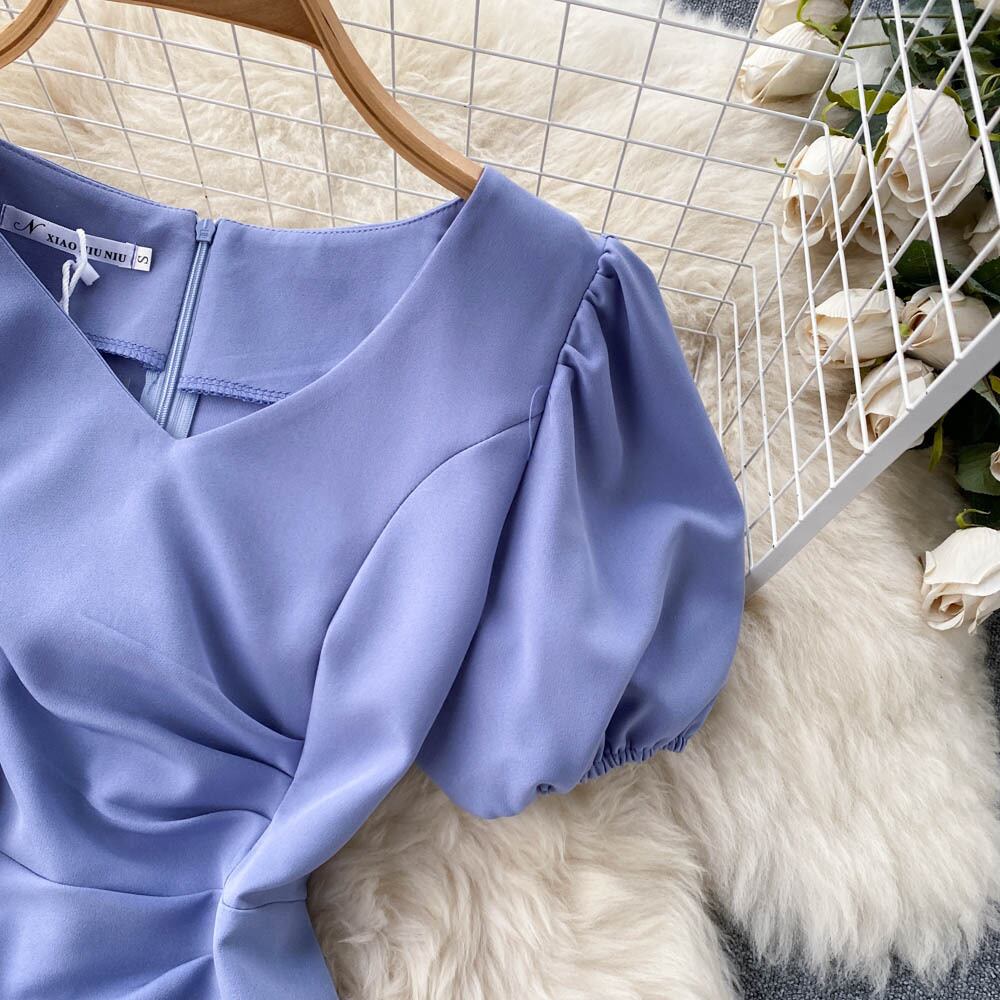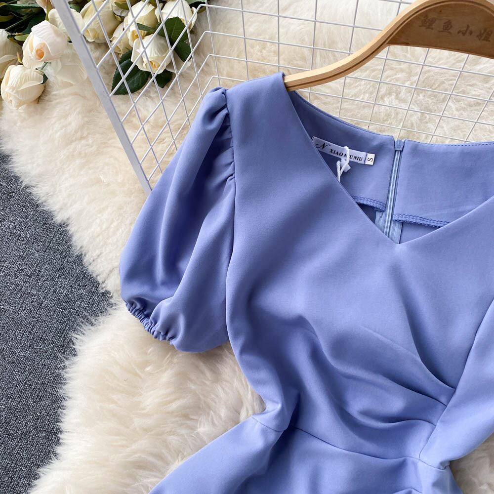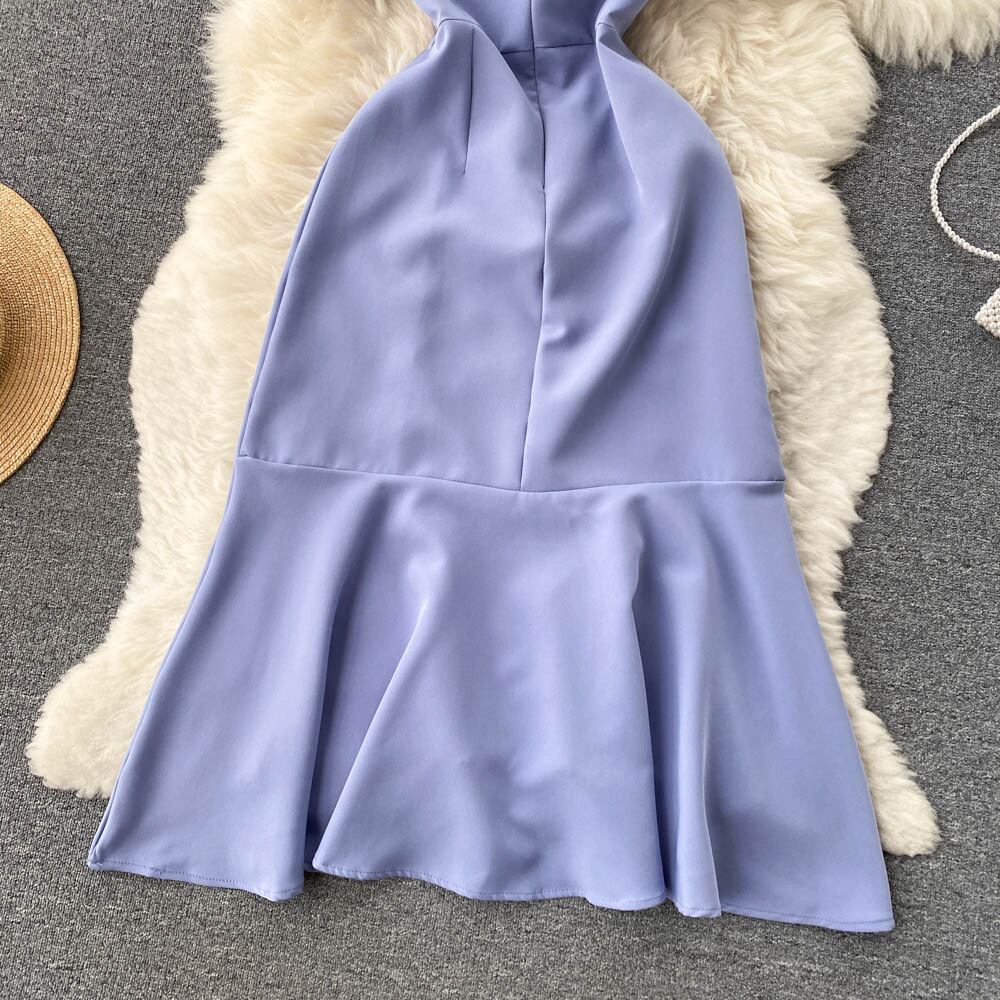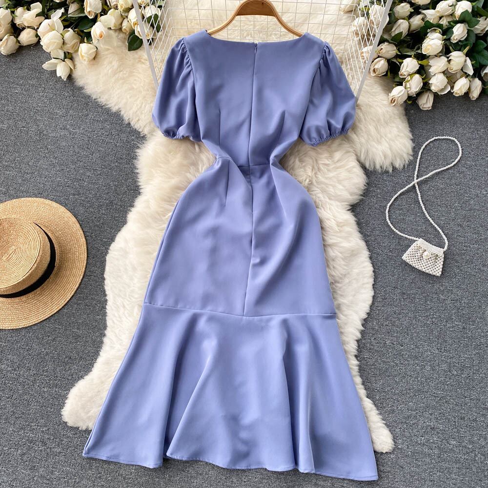 夏のセクシーなフレンチドレスは、細い、正方形の首、フリル、不規則なウエスト、気質、ミドル丈のフィッシュテールスカートです ラッフル サマー 夏物 スクウェア lyxaj44202895161