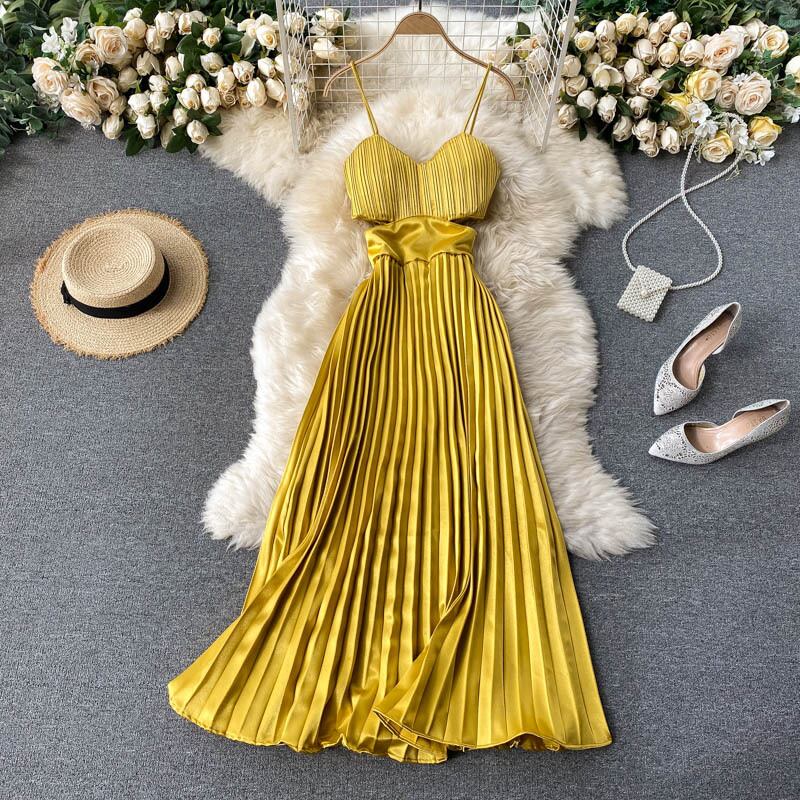 気質セレブのスモールドレススカートは、通常、くぼみのあるくぼみのあるウエストのセクシーなサスペンダードレスプリーツロングスカートと一緒に着用できます lyxaj49932416354