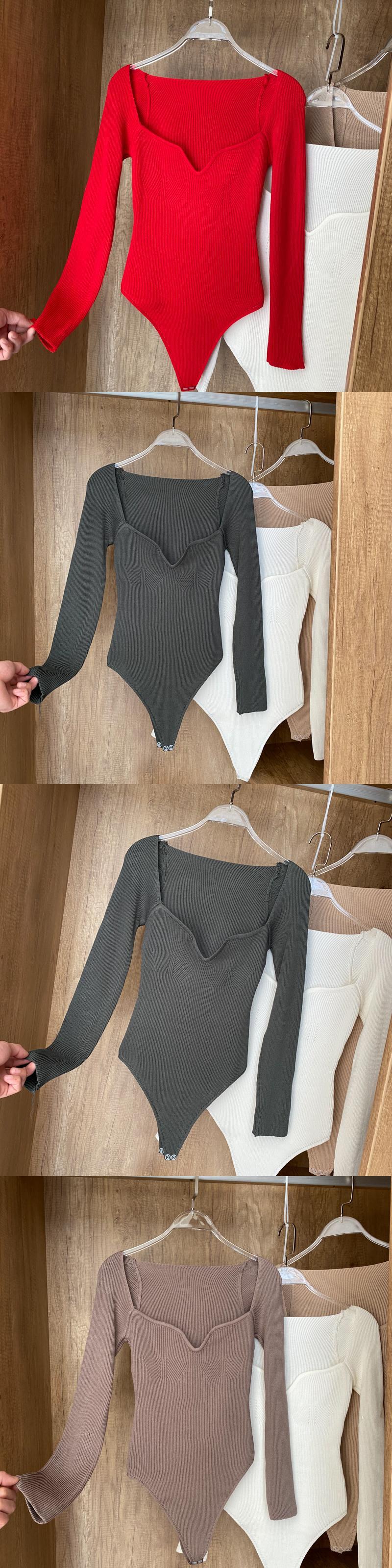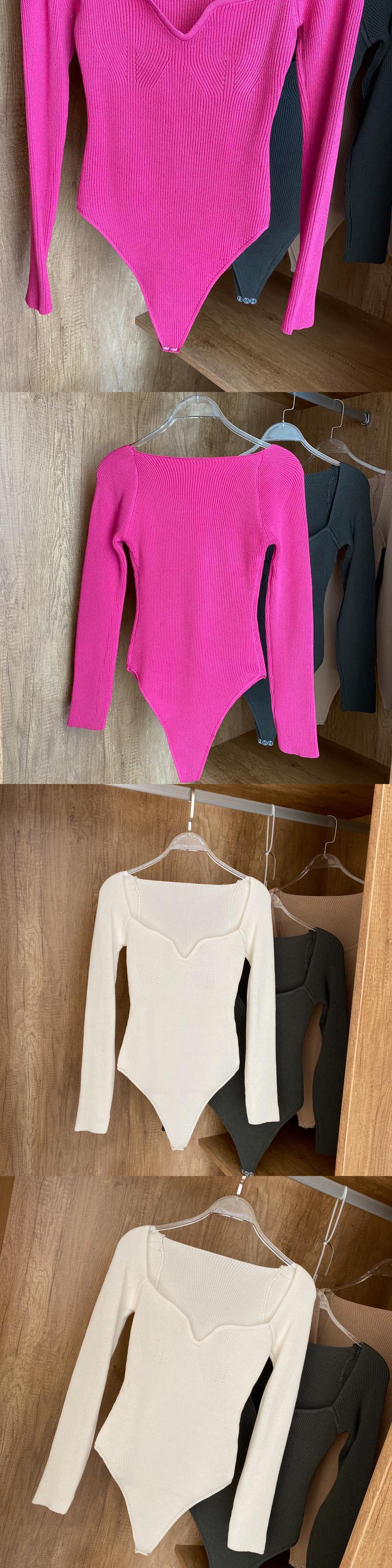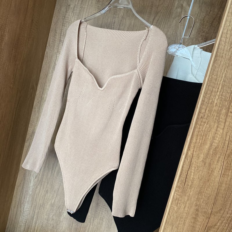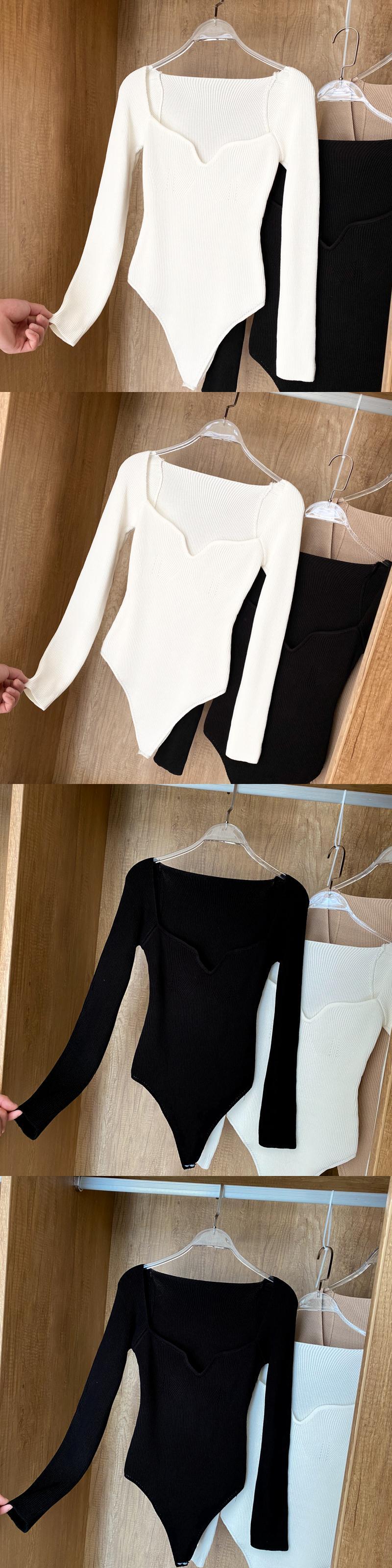 ヨーロッパとアメリカのインファッションブロガー私服セクシーな低襟漏れ鎖骨自己栽培オールマッチボトミング長袖ニットジャンプスーツ ロング ヨーロピアン lyxaj42113475542
