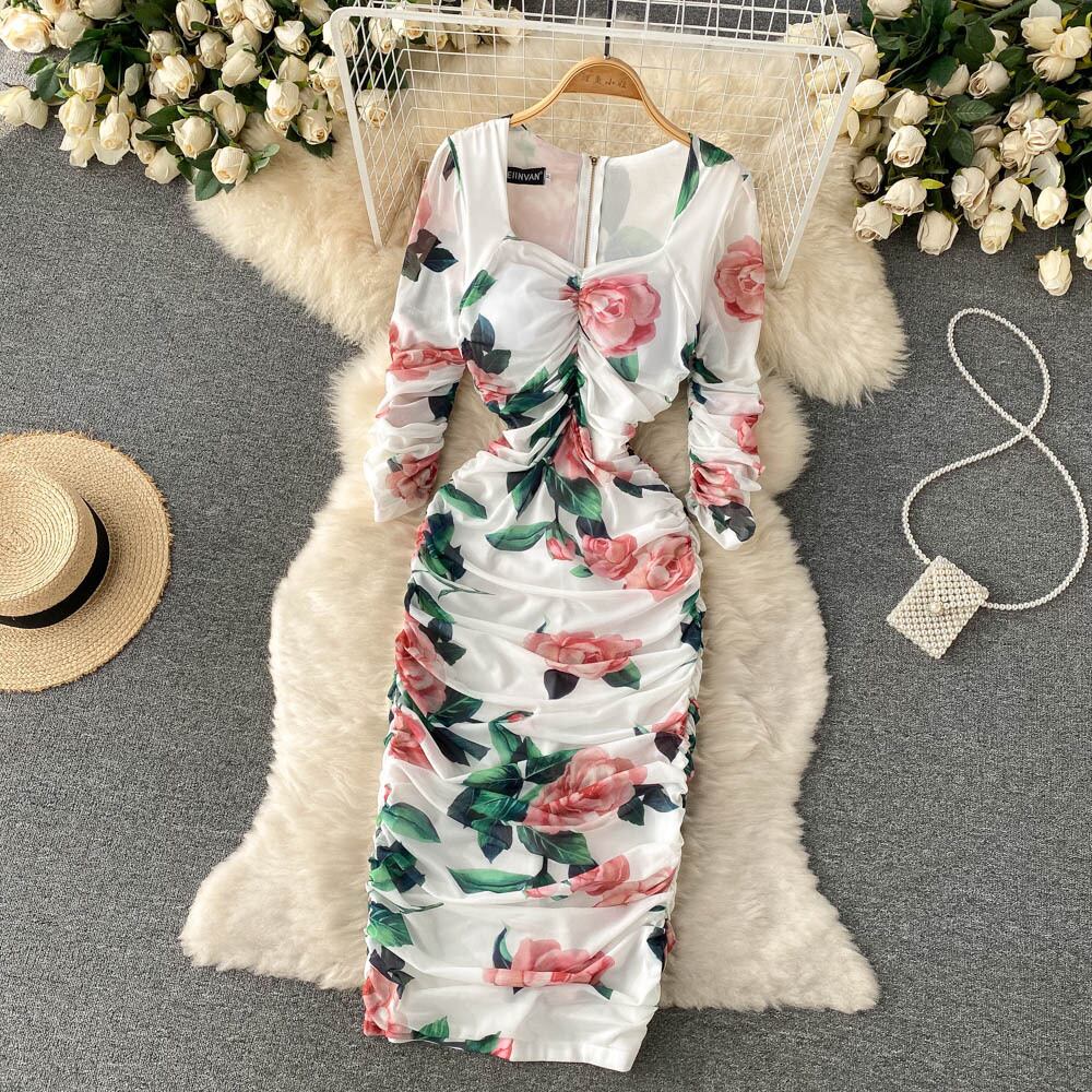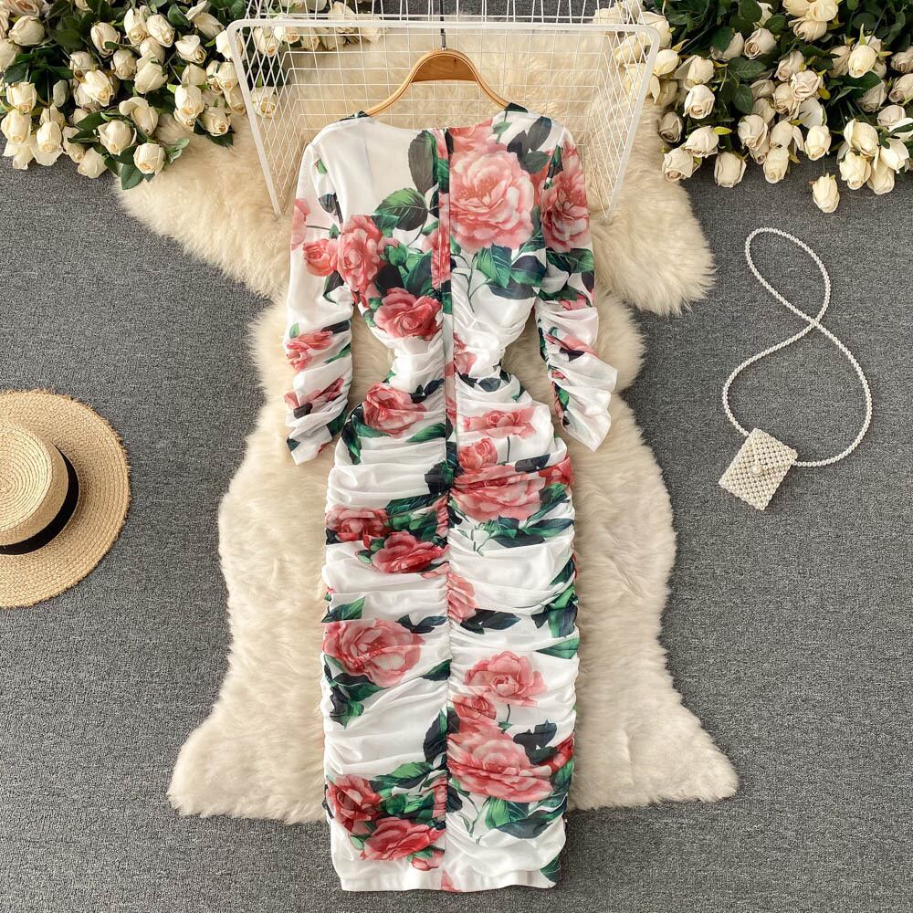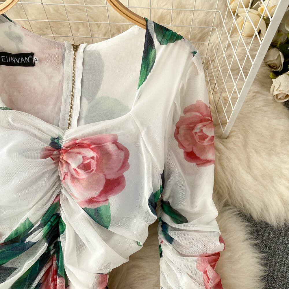 Light mature women's clothing waist bag hip rose print catwalk mid-length dress temperament is thin and elegant mesh skirt エレガント メッシュ スカート lyxaj10983951656