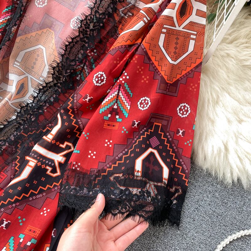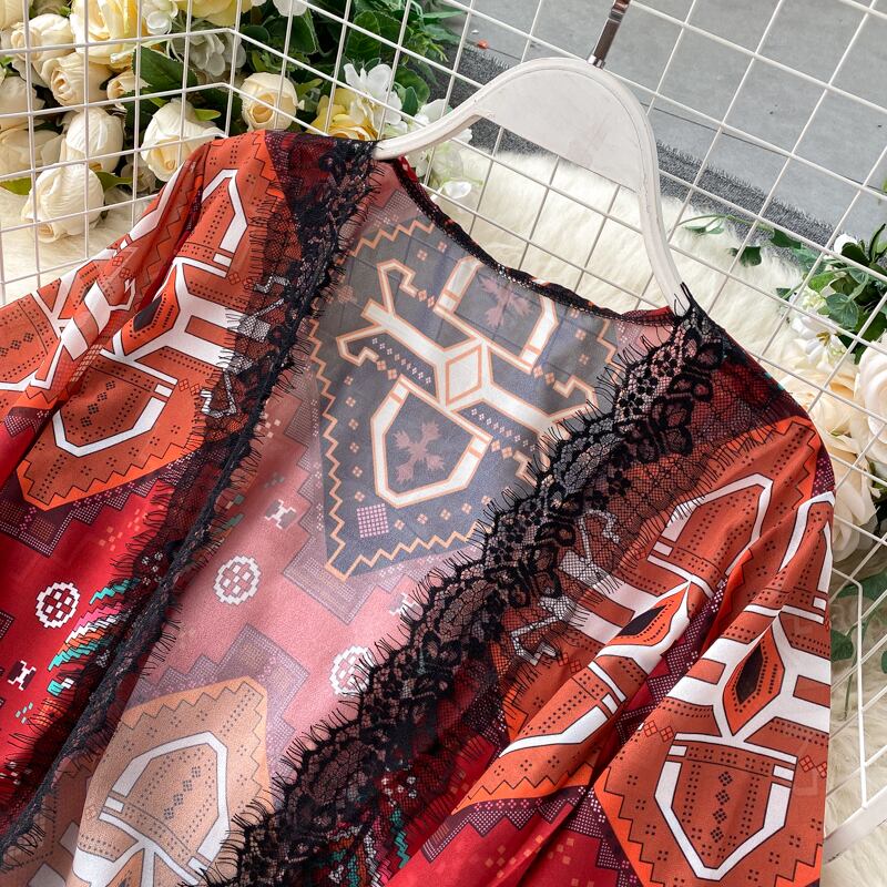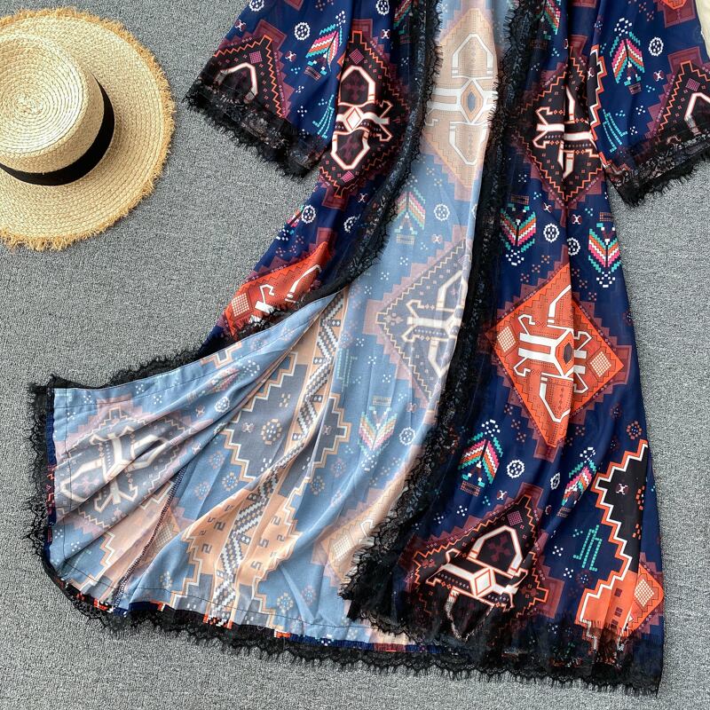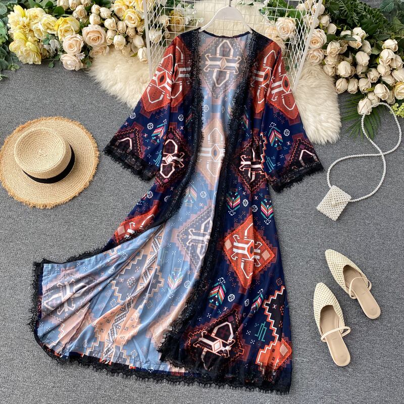 シーサイドホリデーエスニックスタイルプリントショール薄手のコートタイドロングルーズシフォンカーディガン日焼け止め服女性の夏 サマー 夏物 lyxaj20147661018
