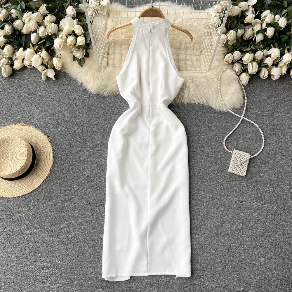 2022年夏の新星同じスタイルのドレススカートセクシーな純粋な欲望ウィンドホルターネックウエストスリットバッグヒップドレストレンディ サマー 夏物 ピュア lyxaj90187874732