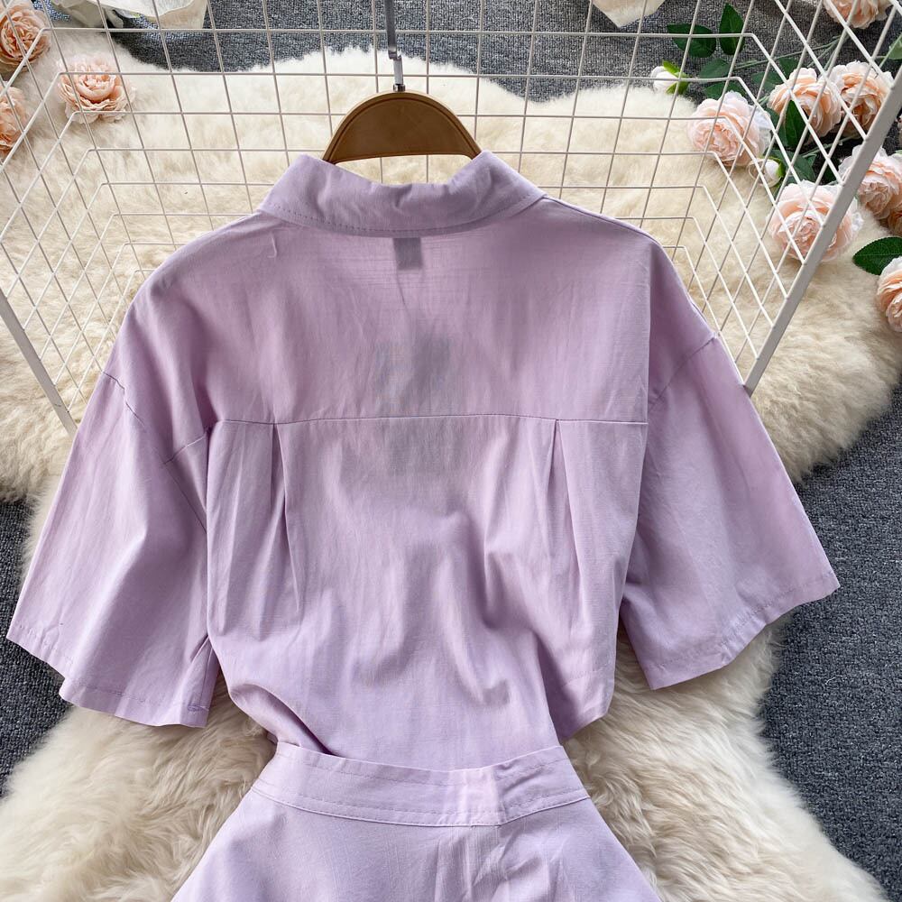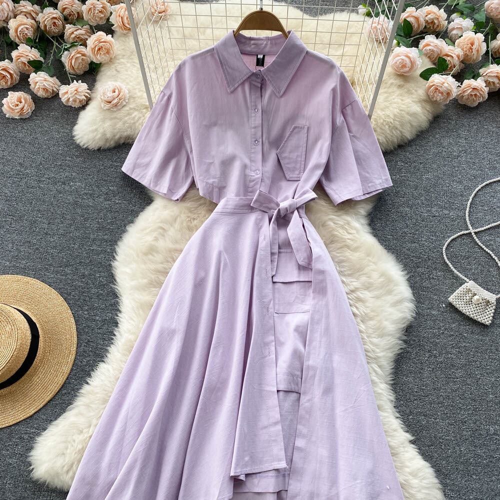 夏の新しいポロカラー蝶ネクタイ不規則なスカートドレス女性のフランスのレトロな文学的なシャツのスカート リボン サマー 夏物 lyxaj89078206175