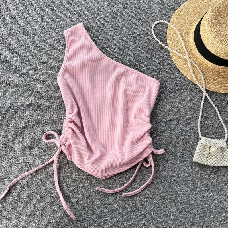ショートダブルドローストリングプルオーバーラウンドネックノースリーブタンクトップTシャツ Oネック lyxaj32191085751