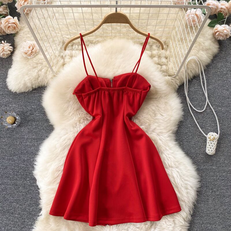 2022 summer new sexy solid color temperament thin tube top suspender dress open back loose princess A-line skirt サマー 夏物 スカート Aライン ソリッドカラー lyxaj27390090005